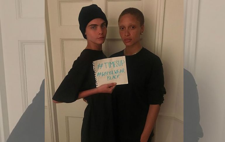 La protesta contra el acoso y el abuso del género masculino hacia las mujeres del espectáculo no solo se llevó a cabo en la alfombra roja de los Golden Globes, ni mucho menos en los diferentes eventos que se realizaron posteriormente, donde algunas actrices acudieron vestidas de negro, sino también en las redes sociales.Las modelos Cara Delevingne y Adwoa Aboah se pronunciaron en contra de esta situación desde la cuenta oficial de Aboah. Con un letrero escrito a mano colocaron los principales hashtags #TimesUp #WhyWeWearBlack (Su tiempo se acabó y Por qué vestimos de negro).Asimismo, las modelos escribieron en la descripción de la foto “standing in solidarity” (en solidaridad) y los hashtags antes mencionados. Cabe destacar que tanto Delevingne y Adwoa Aboah visitieron de negro.JB.