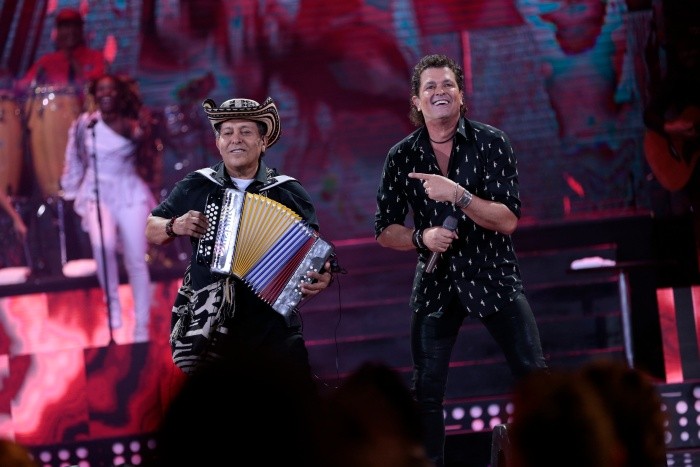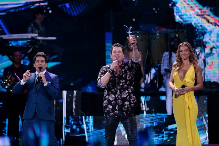 Una integración latinoamericana se vivió de la mano de Carlos Vives, quien compartió su gloria sobre el escenario de la Quinta Vergara con sus compatriotas colombianos Sebastián Yatra y ChoqQuibTown.Banderas de diversas nacionalidades se vieron entre las quince mil personas que hicieron junto con él una fiesta, en donde fueron pocos los momentos en los que se quedaron sentados.Baile y sudor dieron constancia de ello, sobre todo de parte de él que incluso se cambió de camisa. Llevó el ballenato y sus éxitos en alto desde que salió tocando la armónica y bajó las escaleras en medio de su producción.La gaviota de plata -la cual regaló a un fan con síndrome de down- y la gaviota de oro fueron suyas, pero también el corazón de a quienes transportó a su tierra y sus tradiciones. El repertorio inició con "Pa Maite" y "Ella es mi fiesta".Siempre cercano a sus seguidores, a quienes tocó de las manos en cada oportunidad, y saludando a algunos de los jueces del festival como Gente de Zona y Zion y Lennon, no paraba de sonreír."Gracias Viña, gracias Chile por esta oportunidad de encontrarnos esta noche. Esta noche el festival trae un mensaje hermoso de hermandad, un mensaje de amistad, de un corazón gigante de los chilenos", expresó.Entre el fuego emanado del escenario siguió con "Carito", "Cuando nos volvamos a encontrar" y presentó a los primeros invitados de la noche que prometió tendría varias sorpresas. Con ChoqQuibTown llegó "El mar de sus ojos" y en "Fruta fresca" subió a una bailarina.No desaprovechó para decir que estaba viviendo un sueño y de pronto apareció el puertorriqueño Wisin para "Al filo de tu amor" y "Nota de amor"."Gracias por la oportunidad. Siempre es una bendición cantar con grandes maestros que te inspiran para seguir creciendo", le agradeció el reggaetonero quien además preguntó por las mujeres solteras.A los chilenos que vuelven de tierras lejanas les cantó "La foto de los dos", con la cual el recinto se iluminó con las luces de los celulares.Después de darle el primer reconocimiento de la noche dio pie a "Volví a nacer" y el momento esperado por todos llegó de la mano de "La bicicleta", paseando con una por todo el escenario. De un lado a otro. Por supuesto, fue una de las más grabadas por los smartphones.Sebastián Yatra lo acompañó en "Robarte un beso", bajando a bailar con los jueces. Las ocurrencias aparecían y Vives le pasaba el micrófono al público.La gaviota de oro fue dedicada a su familia y a los artistas colombianos que cantaron con él. El gran cierre corrió a cargo de todos ellos llevando el nombre de su país muy alto al ritmo de "La tierra del olvido" con la cual hizo bailar hasta a los presentadores Carolina de Moras y Rafael Araneda en una transmisión que pudo verse por los canales TNT y HTV.JB.
