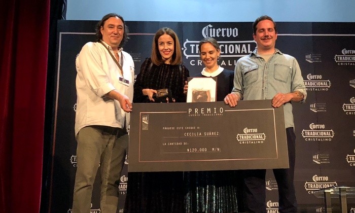 La tarde del domingo, Cecilia Suárez, actriz de "Sexo, Pudor y Lágrimas", "Párpados Azules" y más recientemente "La Casa De Las Flores", recibió el premio José Cuervo a la trayectoria el cual consistió en un cheque de 120 mil pesos, convirtiéndose en la primera mujer en recibir el Premio José Cuervo del Festival Internacional de Cine de Morelia (FICM). El galardón es ofrecido por la marca de bebidas alcohólicas y ha sido entregado anteriormente a personajes como Diego Luna, Demián Bichir y Amat Escalante. La actriz recibió también el Ojo del FICM, máximo galardón que otorga el certamen michoacano de cine. "Es un honor recibirlo, me es muy especial ser la primer mujer que recibe este honor y el futuro de quienes vienen atrás de nosotros sean más frecuentemente reconocidas como lo merecen", subrayó. "El dinero seguramente será una parte para las causas sociales, aparte de verdad nunca he ganado nada, ni los tazos de las papas y me quiero dar permiso de disfrutar una parte de eso yo", apuntó a pregunta expresa.Cecilia Suárez toma con tranquilidad el éxito de su personaje Paulina de la Mora de la serie "La Casa De Las Flores", convertida en un fenómeno en redes sociales. La manera pausada de hablar dentro de la serie ha provocado videos en redes sociales de fans imitándola y que la gente se acerque a ella en la calle."Es sorprendente el alcance que tiene Netflix, pero fuera de eso y gozar con que a la gente le haya gustado la serie, que te siga, está bien. Esto es una cosa que está en movimiento y hay que gozarlo mientras se está generando y agradecer", dice la actriz. Por ahora, comenta, no sabe nada del futuro del personaje dentro de las recién aprobadas temporadas 2 y 3 de la serie.AC