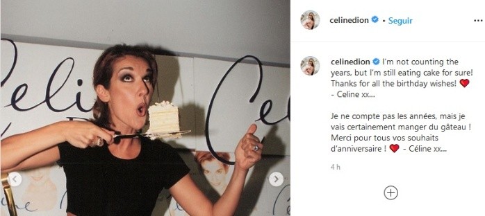 El nombre de Céline Dion ha estado muy activo en Twitter, los usuarios de la red social están celebrando que hoy la intérprete de la poderosa balada "My heart will go on" cumple 53 años de vida.A través de su cuenta de Instagram, la estrella compartió un par de fotografías donde está partiendo un pastel, debajo de las imágenes, escribió: "No cuento los años, pero sin duda comeré pastel. ¡Gracias por todos sus deseos de cumpleaños!".Originaria de Charlemagne, Canadá, desde muy joven Céline comenzó a desarrollarse en la música, primero en el idioma francés y después en el inglés. Tiene tres hijos, René, Eddy y Nelson, estuvo casada con René Angélil, el padre de sus hijos de 1994 a 2016.Céline además de ser una cantante extraordinaria, también es un icono de la moda, en su cuenta de Instagram, la estrella suele publicar icónicos looks de las más grandes firmas de lujo, los vestidos sofisticados y con estructuras en los hombros son su debilidad.Su álbum más reciente es "Courage", del cual publicó una reedición en 2019, destaca la canción dance "Flying on my own". Su gira que lleva el mismo nombre del disco comenzará a desarrollarse en el 2022, principalmente en ciudades de Europa.A continuación escucha este top cinco de sus temas más populares en la plataforma Spotify.jb