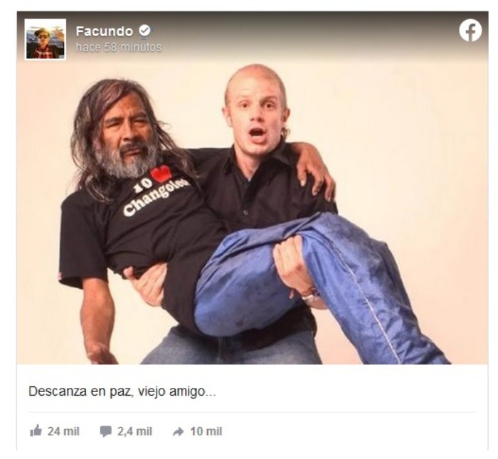 Samuel González, mejor conocido como "Changoleón", murió. Facundo, el hombre que le dio la oportunidad de participar con él en sus programas televisivos, confirmó el deceso este martes.A través de sus redes sociales, el irreverente conductor anunció que el hombre había fallecido, por lo que en pocos minutos el "Changoleón" de volvió tendencia.Con una imagen en donde se le ve junto a "Changoleón", Facundo le dedicó un mensaje: "Descansa en paz, viejo amigo..."Era febrero del 2005 cuando Facundo estrenó "Incógnito", uno de los programas por los que es más conocido, sin embargo, el show adquirió mayor fama cuando el conductor integró a "Changoleón" como uno de los participantes más activos, pues el público le solicitó que siguiera trabajando a lado de este personaje que se ganó el cariño de las y los televidentes pero, ¿cómo fue que se conocieron?En una entrevista que Facundo concedió a Roberto Mtz en su canal de Youtube, hace un año, le contó que a lo largo de las grabaciones del programa -que se emitía cada miércoles- se crearon diferentes secciones, por lo que en una ocasión, el productor del programa y el conductor tuvieron la idea de realizar una episodio de infidelidades, todas ellas actuadas, el cual alcanzó alto niveles de audiencia, por lo que la producción pidió que se realizara otro programa con la misma temática.Sin embargo, a Facundo le pareció que sería aburrido realizar lo mismo, por lo que comenzó a reunir todos los elementos que la producción les suministraba para llevar a cabo una temática distinta que pudiera llamar la atención de la audiencia:"¿Qué haces, wey? Tenemos un buen de elementos; una limusina, unas morras, el boliche, las alitas, el table (dance)", estimó.Fue entonces que él, junto con la producción de "Incógnito", salieron de Televisa llevados por la limusina, preguntando a todos los que se encontraban que quién quería subirse al vehículo que iba al table dance, y fue entonces que Facundo y "Changoleón" tuvieron su primer encuentro."Empezamos a meter gente, la que sea, de: 'Oigan, ¿Quién quiere venir? Vamos a acabar en el table', pues en cuanto dijimos eso, nos bajamos y estaba 'Changoleón', le dijimos: 'Oye, ¿jalas con nosotros?', y contestó: 'De pelos'", rememoró el presentador de TV."La gente comentó tanto de 'Changoleón' que yo le dije al productor: 'Oye, wey me están dice y dice de este wey, hagámosle una sección y ya', hubo un momento que creo que era más famoso que yo", recordó.JM