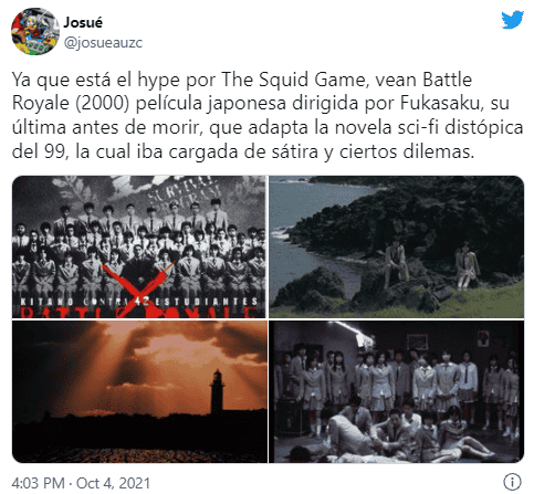 Si has terminado de ver la serie "El Juego del Calamar", esta es una lista de historias con temáticas parecidas, en la que un grupo de personas debe ir sorteando diferentes pruebas de sobrevivencia.Tal vez una de las más mencionadas últimamente es la japonesa "As the gods Will", dirigida nada más y nada menos por Takashi Miike, el famoso director de cine japonés, cuyo trabajo ha abarcado el cine gore con historias como "Ichi The Killer" y otros filmes mundialmente populares como "Audition".Se ha llegado a comentar la similitud entre ambas historias, sin embargo, Netflix ha dado a conocer que en realidad, "El Juego del Calamar" tenía ocho años tratando de realizarse pero no encontraba quién quisiera apostar por ella debido al tipo de historia.Pero, ¿de qué se trata "As the gods Will"? la historia comienza con un estudiante llamado Shun Takahata, que se la pasa jugando videojuegos violentos. Un día, de pronto, se ve obligado a jugar un juego en el que un Daruma (una figura votiva sin brazos ni piernas) aparece en la escuela y a quienes se muevan les explota la cabeza. Nadie sabe qué es lo que está pasando, pero sí que tienen que sobrevivir a como dé lugar, con las reglas del juego. En cada salón de la escuela ocurrió lo mismo y sólo uno sobrevivió. Cuando creen que ya terminó, se enteran que "tienen que ponerle el cascabel al gato", y en el gimnasio de la escuela aparece un maneki neko gigante que se come a quienes intentan acercarse. El fenómeno se está replicando en todas las escuelas y hay aún más competencias en las que poco a poco irán siendo eliminados los sobrevivientes, hasta que sólo quedan unos pocos que irán descubriendo quiénes están detrás de este juegoUn grupo de personas se despiertan dentro de un cubo gigante, con puertas que dan a otros cubos con trampas mortales, como una red capaz de rebanar un cuerpo humano. Los personajes encerrados allí son todos desconocidos entre ellos y tienen diferentes conocimientos que pueden ayudarlos a descifrar hacia dónde avanzar para intentar encontrar una posible salida, pero lo cierto es que varios de ellos mueren en los intentos, y cuando no, los propios problemas entre ellos se vuelven otro obstáculo. Sin saber por qué o para qué, todos luchan por salir con vida. Esta es una trilogía en la que distintos grupos de personas tendrán que sobrevivir a pruebas que desconocen, sin instrucciones, sin mensajes, sin saber qué les espera al finalEsta es otra joya japonesa, una película de culto basada en un best seller. En la historia, el japón que se vive está en sus extremos, hay desempleo, las escuelas están siendo boicoteadas por los estudiantes y ante el descontrol, el gobierno lanza la ley Battle Royale, en la que cada año, una clase elegida al azar es llevada a una isla en la que los alumnos tienen que luchar entre ellos durante tres días y sólo una persona puede sobrevivir.Otra historia creada por los japoneses. Netflix la lanzó en diciembre de 2020 y comienza con un joven llamado Arisu que sólo se la vive jugando videojuegos y su padre se lo recrimina, por lo que se va de casa a buscar a sus dos amigos. Se van a un festival en una de las zonas más habitadas de japón, luego de un incidente con la policía, se esconden en un baño y después de un rato salen porque se va la luz pero se dan cuenta que están completamente solos, que no saben a dónde se han ido todos. En la noche, ven una pantalla que les invita a jugar un juego, por lo que comienzan a seguir las instrucciones con la presencia de otras personas que llegan al lugar. La primera prueba tiene dos puertas, una que dice vida y otra muerte, cuando una de las mujeres cruza la que dice vida, muere, por lo que todos los demás se van por la otra puerta. Es así como les dan distintas "visas" que son tiempo en el que pueden seguir sin jugar, pero al final de esta tienen que seguir jugando para mantenerse con vida o morir en el intento.Esta serie está basada en un manga japonés en el que aparece una joven llamada Nao Kanzaki, quien es demasiado, demasiado honesta. Un día recibe un maletín con 100 millones de yenes, con una nota que era una invitación a Liar Game Tournament. Posteriormente, en la televisión aparece un personaje enmascarado que la felicita por aceptar estar dentro de la competencia, y que no se puede echar para atrás. Ahí se da cuenta que el sobre con el que venía el paquete del dinero tenía una pequeña leyenda que decía "Solo puedes abrir esto si estás de acuerdo en participar en Liar Game", es decir, que ella, en cuanto recibió el paquete lo abrió y sin querer, aceptó estar dentro del juego. A través de la pantalla, esta persona le explica lo sencillo el juego: robar el dinero de la otra persona, un gran reto para una mujer demasiado, demasiado honesta. "Cada acción hecha para robar dinero no será considerada como un crimen", y que el juego durará 30 días. El ganador o ganadora será quien tenga más dinero al final de la competencia.Sigue leyendo…Si te interesó esta noticia y quieres saber más, entonces descarga y descubre INFORMAPlus, la aplicación digital de EL INFORMADOR, en donde tenemos contenidos exclusivos, seleccionados por nuestros editores, para darles una experiencia más completa a los lectores.Descarga la aplicación y pruébala GRATIS por treinta días.Si eres suscriptor de EL INFORMADOR tu acceso está incluido, solicítalo al 33 3678-7777AF