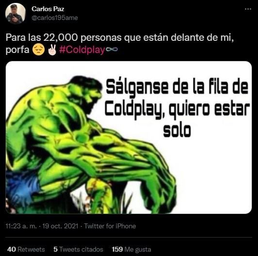 Este martes en punto de las 11:00 horas inició la preventa de los boletos para Coldplay en Guadalajara, CDMX y Monterrey sólo para usuarios de Citibanamex, quienes compartieron su experiencia a través de redes sociales. Coldplay anunció el pasado jueves su gira mundial “Music Of The Sheres Wolrdl Tour” en 2022, y los mexicanos podrán disfrutar de este show el 25 de marzo en Monterrey; el 29 de marzo en Guadalajara y el 3 de abril en CDMX.Algunos usuarios en redes sociales no perdieron la oportunidad de compartir sus reacciones y memes por los precios para los conciertos de Coldplay. En los primeros 15 minutos, el sistema de Ticketmaster registró por lo menos 58 mil 523 usuarios que hicieron fila para comprar el pase.El costo de los boletos para Coldplay en México, según el sitio oficial de Ocesa, oscila entre los 480 pesos, hasta los 3 mil 80 pesos. A continuación los precios en Guadalajara y CDMX.La preventa terminará hasta las 23 horas de la noche del jueves 21 de octubre. Posteriormente el público en general podrá disponer de los boletos a través de Ticketmaster.AC
