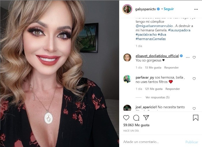 Gaby Spanic ha sido tema en las redes sociales debido a que sus seguidores le han pedido que no abuse de los filtros.La actriz suele estar en contacto con sus fans a través de las redes y gusta compartir detalles de su día a día a través de ellas pero, pese a que tiene casi dos millones de seguidores en Instagram, una nueva foto de Spanic ha hecho que le llueven críticas.Spanic subió una imagen de ella para dar un adelanto de como se le podrá ver en la obra de teatro que prepara y que está basado en su exitosa telenovela “La Usurpadora”, sin embargo, más allá del adelanto, lo que sorprendió a los cibernautas fue el aspecto de la venezolana, quien en las imágenes se ve casi irreconocible.AC