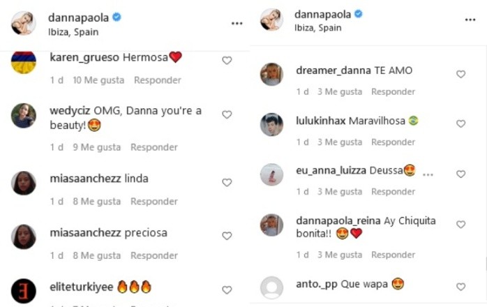 La cantante mexicana, Danna Paola sorprendió a sus fans con unas candentes fotos donde aparece luciendo poca ropa, y de fondo las playas de Ibiza, en España.En su cuenta de Instagram, la también actriz compartió una serie de imágenes donde está luciendo un bikini en color oscuro, recostada sobre una tabla en la arena, y presumiento de su envidiable figura.Antes de estas imágenes, Danna Paola ya había presumido que se encontraba en Ibiza, pues compartió algunas fotografías donde se le ve muy sonriente, luciendo un vestido en colores claros.Estas publicaciones desataron el furor de los fanáticos que no tardaron en elogiar a la mexicana, y escribieron cientos de comentariosDanna Paola se encuentra en España grabando un reallity show de canto.GC