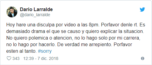 El video difundido hoy en redes sociales donde un supuesto boxeador profesional llamado Darío Larralde mostraba su odio hacia la comunidad LGBT, resultó, en parte fake news.Larralde, quien practica boxeo, afirma en Instagram haber participado en los Juegos Olímpicos de Río de Janeiro de 2016 (de lo que no se encuentran pruebas en una búsqueda rápida en Internet) y estar próximo a representar a México en los Juegos de Tokyo 2020.Esto ha sido desmentido a través de un tuit por el Comité Olímpico Mexicano, que aunque reprobó las declaraciones homofóbicas del joven, afirmó que "no pertenece a la selección nacional de boxeo".Usuarios celebraron que Larralde "no nos represente" e incluso han puesto en duda la seriedad de sus palabras.A lo largo del día, la presunta cuenta de Twitter de Larralde, abierta en diciembre, se ha visto asediada con tuits de usuarios que cuestionaban sus declaraciones y pedían acciones por parte de la Conade y Conapred, entre ellos el actor Luis Gerardo MéndezLarralde, a pesar de haber ofrecido disculpas en su primer tuit, sostuvo lo dicho en el video retwitteando aquellos mensajes en los que usuarios defienden el discurso de odio como una aparente "libertad de expresión".En su segundo mensaje anunció que haría una disculpa por video a las 8:00pm, pero el tuit fue borrado alrededor de las 8:30pm y no hubo comunicación alguna desde la cuenta.CE