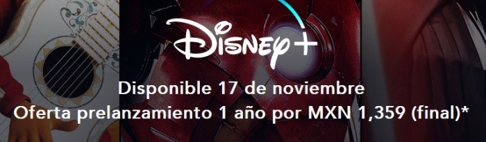 Disney+, la apuesta de "streaming" del gigante de Mickey Mouse, reveló el precio anual en preventa para los usuarios en México.En el sitio oficial de la plataforma se puede ver una promoción de preventa de mil 359 pesos y será válida a partir de mañana hasta el 16 de noviembre. Sin embargo el precio mensual todavía no lo han revelado.Disney+ incluye contenidos de Disney, Pixar, Marvel, "Star Wars" y National Geographic, entre otros, y es la baza con la que esta gran compañía del entretenimiento entró en las llamadas "guerras del 'streaming'", es decir, la muy competida lucha por hacerse un hueco en la televisión digital.Esta nueva plataforma se estrenó en EU. el pasado noviembre y comenzó una expansión progresiva por todo el mundo que en las últimas dos semanas le llevó a desembarcar a países europeos como España, Reino Unido, Irlanda, Francia, Alemania, Italia, Austria y Suiza.De acuerdo con un omunicado compartido el pasado 18 de agosto del 2020, la fecha oficial de lanzamiento de Disney+ en México será el próximo17 de noviembre 2020.jb