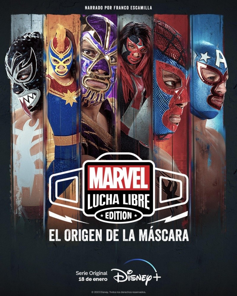 A partir de hoy 18 de enero, los espectadores de Disney+ pueden disfrutar en el servicio de streaming de Disney+ la serie de estreno Marvel Lucha Libre Edition, El origen de la máscara, una nueva serie mockumental del sello Disney+ Original Productions, con todos sus episodios.Esta nueva serie sigue el paso a paso del torneo de lucha libre mexicana con luchadores inspirados en personajes de Marvel. Con el comediante mexicano Franco Escamilla como narrador principal, la nueva producción presenta la historia detrás del campeonato de Marvel Lucha Libre Edition, combinando lo mejor de la cultura de la lucha libre con las historias, los secretos y las rivalidades entre rudos y técnicos inspirados en héroes y villanos y toda la acción de Marvel.Con una narración mockumental en Marvel Lucha Libre Edition, El origen de la máscara, las cámaras registran el delante y el detrás de las “máscaras” de un torneo que enfrenta a Los Técnicos y Los Rudos, dos grupos de luchadores inspirados en los Súper Héroes y los villanos más icónicos de Marvel.A lo largo de cinco episodios, se registra cada instancia de la liga desde la perspectiva personal de los luchadores hasta culminar en el gran evento que premiará a uno de ellos con el codiciado cinturón, coronándolo como el nuevo campeón.Con la inspiración de Marvel como base, la trama sigue, a su vez, el latente peligro de El Simbionte, una sustancia clandestina de alto rendimiento que parece ser consumida por algunos de los luchadores.En tono documental, con humor e ironía, Escamilla será la voz en off en el épico recorrido de Marvel Lucha Libre Edition, El origen de la máscara aportando datos y anécdotas sobre los personajes e información histórica sobre la cultura de la lucha libre en México.La producción también presenta testimonios a cámara de auténticas leyendas del ring así como de jueces, seguidores, reconocidos narradores de luchas, organizadores y expertos en la disciplina.Adicionalmente, los fans también pueden continuar disfrutando de una gran variedad de productos inspirados en los memorables personajes de Marvel Lucha Libre en las categorías más diversas y para todas las edades, disponibles en tiendas físicas y digitales.Con información de The Walt Disney Company México.XM