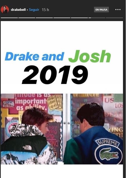 El cantante, Drake Bell confirmó en redes sociales el regreso de “Drake y Josh”, una de las series más exitosas de Nickelodeon.El también actor no ofreció a los fans más que una imagen editada en sus historias de Instagram donde aparece junto a Josh Peck, en una escena de la serie lanzada en 2004 y un texto que dice “Drake and Josh 2019”, confirmando así los rumores que los fans comenzaron luego de que se les viera a ambos salir de las oficinas de Nickelodeon.Asimismo, de acuerdo con una publicación de la revista “People” en marzo pasado, Drake Bell y Josh Peck se encontraba en conversaciones con varias cadenas para un nuevo programa, sin dar pistas si se trataba de la serie o un nuevo proyecto.“Estamos trabajando en algo. Estoy emocionado, creo que tenemos una gran idea”, dijo Bell en los iHeartRadio en Los Ángeles, celebrado ese mismo mes.La cadena Nickelodeon ni el propio Josh Peck han expresado nada aún, pese a que los medios comenzarán a compartir la noticia.AC