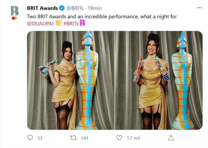 Dua Lipa se coronó este martes como la triunfadora absoluta en la ceremonia de los premios Brit, sumando a su palmarés el galardón de mejor artista femenina británica y el de mejor álbum por "Future Nostalgia".La compositora británica de origen albano-kosovar protagonizó una gala que supuso la vuelta de los espectáculos en directo al Reino Unido tras la pandemia, y fue un derroche multicolor de empoderamiento femenino frente a cuatro mil asistentes, en su mayoría "trabajadores esenciales".Coldplay fueron los encargados de abrir la noche, con una memorable actuación desde una plataforma en el río Támesis frente al O2 Arena de Londres. Con fuegos artificiales de colores y hologramas presentaron su nuevo single "Higher Power".Dua Lipa tomó el testigo ataviada con la Union Jack, la bandera británica, mientras simulaba viajar en una versión 'glam' del metro de Londres e interpretaba algunos de sus éxitos más sonados, tales como "Hallucinate", "Don´t start now" o "Physical".Las mujeres fueron las grandes protagonistas de la noche y coparon la mayoría de los premios. De hecho, cuatro de los cinco nominados en la categoría más importante, la de mejor álbum británico, eran féminas.Dua Lipa, que se llevó dos de los tres premios a los que estaba nominada, aprovechó sus discursos para reivindicar el papel de la mujer en la industria, así como el de los trabajadores que han estado en primera línea durante la pandemia."Está muy bien aplaudirles pero también hemos de pagarles. Creo que todos tenemos que darles un aplauso enorme y enviarle un mensaje a Boris (Johnson) de que todos apoyamos una subida de sueldo justa para los que están en primera línea", añadió entre ovaciones del público.2021 fue el año en el que, tras cuarenta y una ediciones de los Brit, el premio de Icono Global fue a parar a una mujer: Taylor Swift, la única artista que ha conseguido en menos de un año colocar tres de sus álbumes en el número uno de las listas de ventas de Reino Unido."Vivimos en un mundo en el que cualquiera puede decir lo que quiera sobre ti, pero tienes el derecho de demostrarles que se equivocan", dijo al recibir el premio.Por su parte, Little Mix se coronó como mejor grupo británico y también hizo historia en los Brit, al ser la primera formación femenina en ganar este galardón tras 41 ediciones de los premios."No es fácil ser un grupo femenino en la industria musical británica", admitieron al recoger el premio en un discurso en el que hablaron de la "misoginia", la "discriminación" y el "sexismo" al que se enfrentan las mujeres artistas.A nivel internacional, las hermanas estadounidenses de HAIM se alzaron con el galardón a mejor grupo; Billie Eilish logró el galardón de mejor artista femenina. The Weeknd recibió de manos de la ex primera dama estadounidense Michelle Obama el Brit a mejor artista masculino.El O2 Arena vivió una gala frenética que contó, por cuarto año consecutivo, con el incisivo humor del cómico británico Jake Whitehall, así como con las actuaciones de Griff -premiada como artista revelación-, o la promesa del pop Olivia Rodrigo, que hizo su debut en suelo británico interpretando su ya archiconocido "Drivers Licence".Uno de los momentos más especiales de la noche, sin duda, fue la versión de "It´s a sin" de êt Shop Boys a cargo de Elton John y Years and Years, que recordó a la serie homónima sobre el sida en los ochenta y puso en valor el arcoiris como símbolo del pueblo británico durante la pandemia.El excomponente de 'One Direction', Harry Styles y su "Watermelon Sugar" ganaron el Brit a mejor single británico le arrebataron la oportunidad de llevarse el triplete a Dua Lipa.Las voces de Rag N´ Bone y Pink, junto a un coro gospel, pusieron el broche a una noche que recordó a las de antaño, sin mascarillas, ni distancia de seguridad, y devolvió la ilusión por la música en una prueba de fuego para la cultura británica tras la pandemia.JM