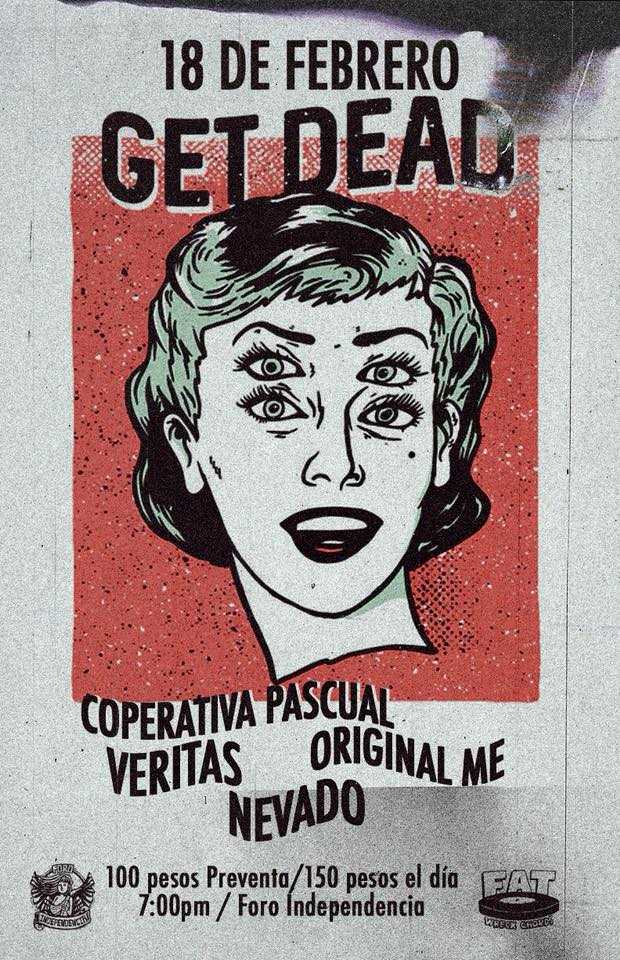Directo desde San Franciso llega por primera vez a Guadalajara todo el Punk Rock de Get Dead. La cita es el 18 de febrero en el Anexo Independencia.Fundada en 2013, Get Dead refleja las influencias The Ramones, Hot Water Music, Bad Religion, The Flatliners, Black Flag y Tom Waits: tres acordes acompañados de molestia social.'Bad News' fue su primer disco y puede presumir estar editado de la mano de Fat Mike, vocalista de NOFX.Conformados por Sam King – Voz, Tim Mehew – Bajo, Moki – Guitarra, Mike McGuire – Guitarra y Scott Powell – Batería; han llevado su propuesta punk por todo el mundo.Para este show Get Dead estará acompañado de los actos locales: Cooperativa Pascual, Veritas, Original Me y Nevado.El show de Guadalajara forma parte de su mini gira por México:Feb 14 - Tecate - Get Dead en tecate/ Feb 15 - Querétaro @ Más Sabe El Diablo /Feb 16 - Durango/ Feb 17 - Zacatacas - Organiza Espíritu Rebelde Produxiones/ Feb 20 - CDMXToma notaDónde: Anexo Independencia (Epigmenio González #66Cuándo: Domingo 18 de FebreroHora: 18:00 horasPrecios: $100 Pesos (Preventa) / $150 (Día del evento)Puntos de Venta: Foro Independencia, Tianguis Cultural (Puesto Becker), Victory Store (Mezquitan 126), Guitar Gear (Av. Guadalupe 5075), Antifashion Plaza del Sol, Galerias y Centro, Tea Recs (Av. México 2136-A) y Radar Records (Pedro Moreno 1296)