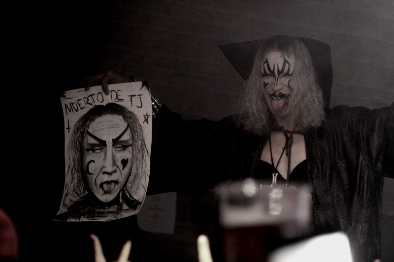 Un personaje que ha sobrepasado a su autor, un ente que nació en las calles, en los kioskos, en las plazas públicas de Tijuana y que alcanzó fama en el mundo de You Tube, para cinco años después lanzar un disco con canciones sosas, simplonas, afables, pegadizas, es el Muertho de Tijuana, quien ya no trabaja de hojalatero arreglando carros ni mucho menos pasa tu tiempo cantando en su comunidad de creyentes evangélicos. Ahora comienza a gozar de las mieles del mainstream. Es tiempo de dar conciertos entre sus 'feligreses'.13 de enero del 2017. Era el día en que el Anexo Independencia recibía al tijuanense,- un año anterior su hermano mayor, el Foro, lo había albergado- para que de nueva cuenta los jaliscienses pudieran ver el acto de Jesús Hernández Ramos, mejor conocido como 'El Muertho'.'Gant' y 'La Putas' abrían el telón de la noche, los primeros, un dúo que entonan temas Shoegaze - DarkWave, mientras que los segundos también en formato dúo electrizaban la noche con un Stoner potente y contestatario.Señores de edad avanzada, adolescentes, niños y hasta dragas compartían por igual metros de piso para ver a al de la ciudad fronteriza. El 'Padre Santo' hacía acto de presencia con sus enormes botas de plataforma negras que enfundaban medias y ligueros, una gran capa negra caía de él y cubría un poco el sostén que recalcaba el crucifico que de su cuello colgaba.Cual pancracio y sus gladiadores, el Muertho caminaba entre los asistentes para llegar a su escenario, entre porras y vítores. Se sabe querido, ya es consciente de la base de fans que tiene y lo disfruta. "Antes tenía un carro, yo estaba bien parado, tenía un buen trabajo y esposa y dos muchachos, pero me hice malo se me metió el diablo", reza el estribillo de 'Malandro' uno de sus primeros canciones que alcanzó la fama y con la que abría su recital. Así es la base de su lírica, no es un gran poeta."Comencé tocando coritos para el Señor. A mí y al Chamán nos corrieron de la iglesia por rebeldes. Ya cuando me peleé con los pastores, les quité las letras religiosas a las canciones y les puse letras urbanas", comparte para este medio el artista urbano que ahora se presenta en bares y diversos foros que le permitan exponer su obra.Su cara repleta de maquillaje blanco retocada con líneas negras en cejas, ojos y labios, le dan una apariencia hostil, que son un versus con sus beats repetitivos y un tanto cómicos.Trasgredir tabús, simular actos sexuales, morder animales con la boca, el Muertho de Tijuana no es único en su especie. Todo el show que hace, ya lo hizo Alice Cooper, Kiss, Manson, Silverio y hasta Odisea Burbujas. Es una versión tropicalizada de todo lo anterior pero aterrizado en México. Aún así, es entretenido, es un frontman básico, pero honesto. Así quedó demostrado ante un Anexo Independencia repleto de asistes que le festejaron todo, absolutamente todo.