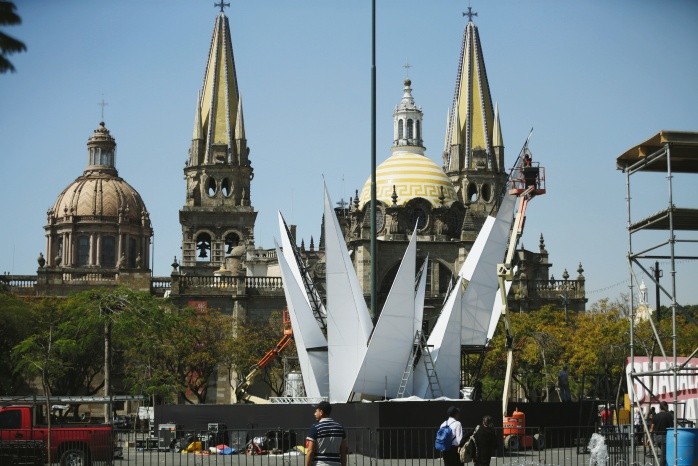 “Es un espectáculo del mundo wixárika, donde el marakame (chamán) se encuentra con unos niños en el bosque y les empieza a enseñar cómo es jugar con fuego, pero con interactividad, luces y una serie de acróbatas (…). Habrá una instalación artística de un águila incrustada en la fachada del Cabañas, sin tocarlo, es una tradición el poner un elemento de un animal con madera, la primera vez tuvimos un caballo y después fue un búho”.