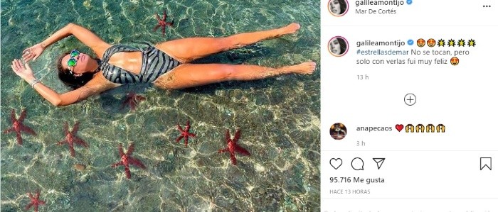 Galilea Montijo respondió a las recientes críticas sobre su cuerpo, luego de haber tomado unas vacaciones en las playas de La Paz, Baja California.Montijo, quien recientemente cumplió 48 años de edad, fue criticada durante la final de “Las Estrellas Bailan en Hoy”, del matutino, donde lució un espectacular vestido verde y un bronceado envidiable. Sin embargo, para algunos de sus seguidores, el look de la presentadora de “Hoy” la hacía lucir “embarazada”.“Para los que me preguntan si estoy embarazada. Les contesto feliz de la vida: Es panza normal. Resultado de unas super vacaciones”, dijo Montijo en sus historias de Instagram.Ante esto, Galilea no dejó que las críticas la hundieran y compartió más fotografías donde luce un bikini que utilizó durante sus vacaciones. “No se tocan, pero sólo con verlas fui muy feliz”, escribió la conductora sobre unas estrellas de mar.Galilea Montijo y su esposo, Fernando Reina, tienen un hijo de nombre Mateo, nacido en 2012. La pareja se encuentra viviendo una etapa en plenitud y amor y no se ha hablado públicamente sobre la posibilidad de tener otro hijo.AC