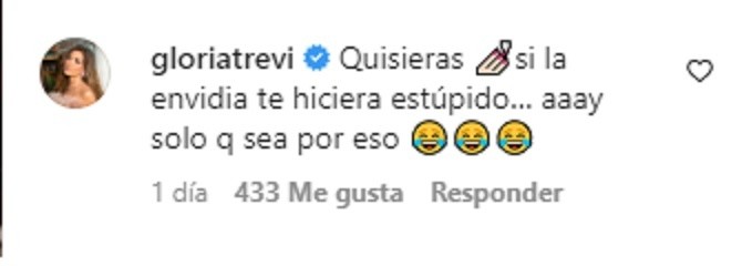 Gloria Trevi anda bastante molesta por los memes que se han generado después de que apareciera con un rostro muy diferente en un video que circula en las redes sociales.En el material, la cantante de 54 años luce con el rostro hinchado y "estirado", lo que sorprendió a varios cibernautas que de inmediato comenzaron a hacer memes, uno de ellos se colgó en el perfil de Instagram de una estación de radio en Hermosillo.Sin embargo, a Trevi no le hizo gracia y comentó dicha la publicación que fue compartida en las redes. "Quisieras, si la envidia te hiciera estúpi… aaay solo que sea por eso", se lee.Entre los comentarios de los cibernautas, pueden leerse tanto opiniones que apoyan a la intérprete de "Zapatos viejos", como aquellos que le aconsejan que ya le pare a las intervenciones estéticas."¿Pero cuál envidia? Sólo es un meme señora, además es la verdad, ya tienes cara de vela derretida y sólo es por tu culpa". "Gloria, tu eres hermosa. Pero lo que sí, es que ya déjate la cara, porque de esa belleza ya no está quedando nada. Con cariño te lo digo"."Cuando no se sabe envejecer con dignidad, pasa esto y bueno lo demás se cuenta solo. La verdad siempre duele. Aguanten vara ridicul@as".Actualmente, la cantante regiomontana se encuentra en plena gira que inauguró el pasado jueves en Puerto Rico, donde un fanático desde los 11 años llamado Juan Figueroa fue sorprendido por su pareja, Luis Morales, al pedirle matrimonio sobre el escenario.Trevi tendrá un espectáculo hoy en en el Sames Auto Arena en Laredo, y luego continuará en Hidalgo en el Payne Arena el 20 de agosto.MF