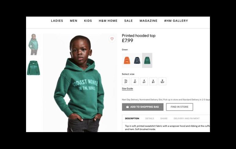 La empresa de moda Hennes et Mauritz (H&M) anunció este lunes la retirada de una foto publicitaria que le valió numerosas acusaciones de racismo en las redes sociales y pidió disculpas.La polémica foto muestra a un niño negro con una sudadera en la que puede leerse "Coolest monkey in the jungle" (El mono más genial de la selva)."¿Quién tuvo la idea en @hm de poner a este niño negro con una sudadera que reza 'El mono más genial de la selva'?", se indignó la modelo Stephanie Yeboah el domingo en Twitter. "Estoy asqueada...", agregó."La imagen fue suprimida de todos los canales de H&M", aseguró una portavoz de la marca. La foto de la prenda sola todavía puede verse en la tienda online."Pedimos disculpas a quienes pudieron sentirse ofendidos", agregó el grupo.No es la primera vez que una gran marca se encuentra en esta situación.En 2014, la marca de ropa española Zara tuvo que retirar de la venta una camiseta infantil de rayas con una estrella amarilla bordada que provocó una gran polémica por su parecido con los uniformes de los judíos en los campos de concentración nazis.En octubre pasado fue la marca de perfumería y cosmética Dove la que tuvo que pedir disculpas por haber difundido en internet una publicidad que también le valió numerosas acusaciones de racismo.El anuncio mostraba a una mujer negra que al sacarse la camiseta se transformaba en una mujer blanca y pelirroja, que a su vez al quitarse la camiseta se transformaba en una latina de cabello oscuro.EDML