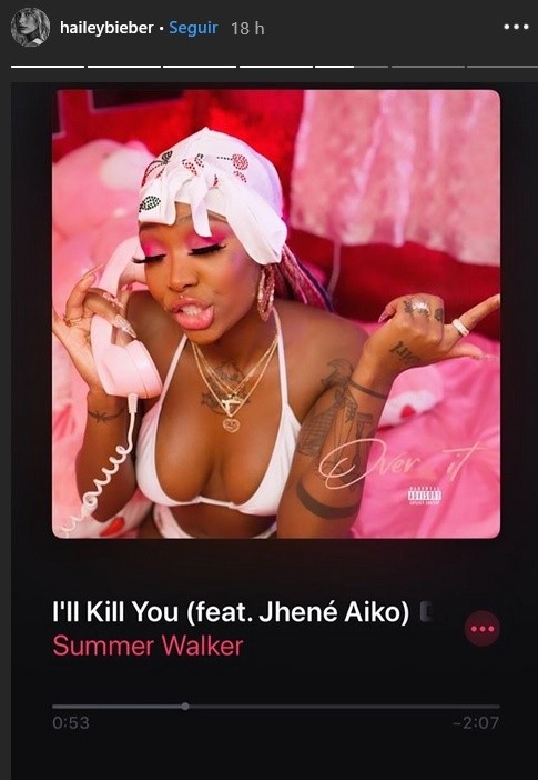 Los fans de Selena Gomez encendieron la alerta roja en redes sociales pues luego que la exestrella Disney lanzara su canción "Lose you to love me", Hailey Baldwin, esposa de Justin Bieber publicó una imagen por la que interpretaron que la modelo quería matar a la cantante."I'll kill you (feat. Jhené Aiko)", de Summer Walker, se leía en la imagen que publicó Baldwin en sus historias de Instagram y que generó la polémica entre los usuarios de redes sociales.Sin embargo, Hailey Baldwin aseguró a "Just Jared" que todos esos comentarios y especulaciones de que ella quería terminar con la vida de la intérprete de "Wolves" eran un sinsentido y que no había respuesta. "Esto es una basura", agregó.Recordemos que Selena Gomez y Justin Bieber tuvieron una relación amorosa con muchas intermitencias, las cuales fueron causa de las infidelidades del intérprete de "Sorry" y que también con el tiempo le permitieron conocer a su actual esposa, Hailey Baldwin.En "Lose you to love me" hay frases que usuarios en redes sociales han pensado que son referencias al noviazgo de los jóvenes como "Vi las señales y las ignoré. Todo era color de rosa distorsionado" o "Di todo de mí y todos lo saben. Tú me destruiste y ahora es obvio. En dos meses nos reemplazaste".jb