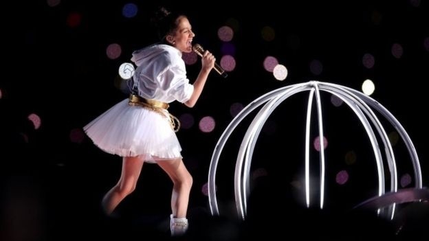 Millones de espectadores sintonizaron el espectáculo de medio tiempo del Super Bowl este domingo, que por primera vez en su historia fue encabezado por dos latinas: Shakira y Jennifer López.El evento se celebró en el estadio Hard Rock de Miami (Florida), donde los Kansas City Chiefs vencieron a los San Francisco 49ers y se llevaron el título de las Liga Nacional de Fútbol Americano (NFL), de Estados Unidos después de 50 años.En el intermedio del partido, en menos de 15 minutos, las artistas cantaron 20 canciones, bailaron ritmos que fueron desde salsa hasta danza del vientre, J.Lo hizo pole dance y Shakira tocó la batería.Pero la presentación no solo fue un despliegue de grandes habilidades artísticas, sino que también tuvo al menos un momento evidentemente político, que llegó en el segmento de J. Lo. López abrió su presentación parada sobre una réplica del Empire State Building de Nueva York mientras cantaba su éxito "Jenny from the block" (Jenny de la cuadra).Vestida con un traje de cuero con tachuelas, la cantante mostró las habilidades de pole dance que aprendió mientras interpretaba al personaje de Ramona en la película Hustlers.J Balvin de Colombia se le unió para interpretar "Qué Calor" y "Mi Gente". Minutos más tarde, la hija de López, Emme Maribel Muñiz, de 11 años, cantó parte del éxito Let's Get Loud, acompañada de un coro de niños, lo que dio pie al momento más político del espectáculo."Mientras Muñiz cantaba, otros niños bailaban en estructuras en forma de jaula, una referencia sutil, pero un posible guiño a los miles de niños, la mayoría de los países latinoamericanos, que han sido detenidos en la frontera [sur de EE.UU.]", escribió Erin Vanderhoof este domingo en Vanity Fair.Raisa Bruner, de la revista Time, señaló que las jaulas eran "un marcado gesto de solidaridad hacia la comunidad latina y aquellos impactados por políticas antiinmigrantes".Segundos después, López cantó, junto a su hija, un verso de Born In The USA,de Bruce Springsteen, mientras se envolvía en un abrigo de plumas que tenía la bandera de EE.UU. por fuera y la puertorriqueña por dentro."Un guiño no tan sutil al manejo del gobierno de Trump de la ayuda para la isla, después de que fue devastada por dos huracanes en 2017", dijo Mark Savage, corresponsal de música de la BBC."La bandera puertorriqueña brilló al sonar la icónica canción de Springsteen, como para recordar a los televidentes que los puertorriqueños son ciudadanos estadounidenses", dijo también Vanderhoof en Vanity Fair.Para Jon Pareles, crítico musical de The New York Times, "se vio como un reconocimiento tanto para Puerto Rico como para los Dreamers, los hijos de inmigrantes indocumentados nacidos en EE.UU.".López, que nació en el Bronx de padres puertorriqueños, donó US$1 millón provenientes de las ganancias de sus actuaciones en Las Vegas para ayudar a los afectados por los desastres naturales en Puerto Rico.Savage, de la BBC, destaca que el show fue muy "simbólico para las audiencias latinas".Su elección como artistas del Super Bowl tuvo una gran importancia en Colombia, dijo Shakira en 2019."Estar en el Super Bowl es muy simbólico, y creo que tenemos una gran responsabilidad con los latinos de todo el mundo", dijo a Reuters en noviembre. "Hay mucho que celebrar sobre nuestra cultura latina, y es una gran oportunidad estar en este escenario tan importante", añadió."Mostremos al mundo lo que dos pequeñas chicas latinas pueden hacer", escribió Jennifer López en Instagram, poco antes de su presentación.Al salir al escenario, Shakira gritó "¡Hola Miami!", en español.Según la NFL, hay 30,2 millones de hispanos fanáticos del fútbol americano en EE.UU., un aumento de dos millones desde 2017.En general, el espectáculo de medio tiempo fue concebido como "una fiesta 100% inclusiva, una fiesta que integra culturas y diversidad", dijo Shakira en una conferencia de prensa previa al juego la semana pasada.Ciertamente logró incorporar más de media docena de estilos musicales, desde salsa y reggaetón hasta hip-hop y bachata; aunque el ritmo vertiginoso hizo que muchos de los éxitos de las estrellas acabaran antes de que pudieras estornudar.Las cantantes solo aparecieron juntas al final, una versión de celebración de Waka Waka de Shakira que, de forma algo confusa, fue el himno oficial de un evento deportivo completamente separado: la Copa FIFA del Mundo de 2010, celebrada en Sudáfrica.* Esta nota es una adaptación de un artículo original de Mark Savage, corresponsal de Música de la BBC, que puedes leer aquí. ***Recuerda que puedes recibir notificaciones de BBC News Mundo. Descarga la última versión de nuestra app y actívalas para no perderte nuestro mejor contenido.¿Ya conoces nuestro canal de YouTube? ¡Suscríbete!
