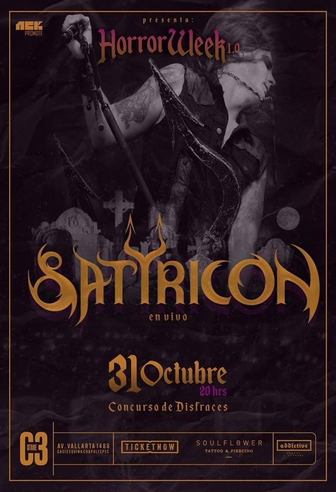 Termina el mes de octubre y con el llega la tradición de 'Halloween' y de 'Día de Muertos', y en Guadalajara habrá oportunidad de celebrar dichas fechas de la mano del 'Halloweek' en compañía de música de metal extremo.Satyricon; 31 de octubre:Uno de las primeras bandas de black metal en introducir atmósferas medievales. Originarios de Oslo, Noruega Satyr (voces), Lemarchand (guitarra), Exhurtum (batería) y Wargod (bajo) lazaron un primer demo, poco después Wargod y Exhurtum dejan la banda: el primero por razones desconocidas, el segundo para formar el grupo de black/thrash Aura Noir. Satyr y Lemarchand reclutan al baterísta Frost para grabar los demos: 'All Evil' en 1992 y 'The Forest Is My Throne' en 1993. Después de esta grabación, Lemarchand se va del grupo, dejando la formación que aun sigue intacta hoy en día: el dúo formado por Satyr y Frost. En 1994 graban su primer trabajo de larga duración: 'Dark Medieval Times', disco de black metal crudo y agresivo, pero también muy inspirado e innovador ya que es probablemente el primer disco de black metal en incluir flautas, guitarras acústicas y teclados, creando una atmósfera medieval jamás oída.En sus casi 30 años de carrera han grabado nueve discos, el último 'Deep Calleth Upon Deep', lanzado apenas en septiembre pasado.Septicflesh y Fleshgod Apocalypse; 2 noviembreLuego de una abrupta separación en 2003, Septicflesh volvió al ruedo en 2007.Agrupación griega de death metal sinfónico con influencias de doom y gótico procedente de Atenas, formados en 1990 por Sotiris Vayenas (guitarra), Spiros Antoniou (bajo y voz), y Christos Antoniou (guitarra) publicando su ep 'Temple of the Lost Race en 1991. Su primer trabajo de larga duración fue en 1994 con 'Mystic Places of Dawn',La formación de la banda entre 1991 y 1997 fue estable, pero en 'The Ophidian Wheel' (1997) y en 'A Fallen Temple'(1998) Natalie Rassoulis, fue añadida. 11 discos de estudio, dos ep´s y uno recopilatorio son su carta de presentación. Fleshgod Apocalypse Banda italiana de death metal técnico formada en 2007 sacaron su primer demo titulado Promo '07.Cuentan con 4 producciones bajo el brazo, 'King', es su última entrega y salió en 2016.AsisteSatyricon / 31 octubre - Septicflesh con Fleshgod Apocalypse / 2 noviembrePrecio por cada evento general: $700 Balcón: $950; incluye 2 bebidas, póster, entrada preferencial Ambos shows 20:00 horas, sólo mayores de edad