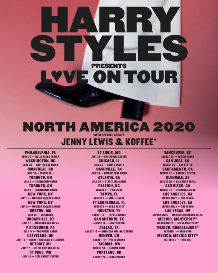 El cantante Harry Styles anunció la mañana de este miércoles las fechas para presentar su “Love On Tour” en todo el mundo, e incluyó tres fechas para conciertos en México. A través de un video subido a la plataforma de Youtube y un cartel en redes sociales, el británico compartió las más de 60 fechas y las ciudades donde se presentará, junto al recinto que será testigo del nuevo álbum “Fine Line”, anunciado la semana pasada y que estará disponible el próximo 13 de diciembre. Para México, Styles ofrecerá tres “shows” en la Arena Monterrey el 29 de septiembre, en la Arena VFG de Guadalajara el 1 de octubre y en el Foro Sol de la Ciudad de México el 3 de octubre. Pese a que en su lista no se encuentran más fechas para América del Sur, el cantante subrayó que pronto anunciará más fechas, incluyendo presentaciones en Australia. Styles estará acompañado por la cantante King Princess en sus conciertos por Europa; de la intérprete y compositora Jenny Lewis en Estados Unidos y Canadá; así como la cantante de reggae jamaicano Koffee en México.En la Ciudad de México y Guadalajara, los boletos en preventa estarán disponibles para usuarios Citibanamex los días 20 y 21 de noviembre a través del sistema Ticketmaster. Los precios en Ciudad de MéxicoLos Precios para GuadalajaraLa última visita de Harry Styles a México fue en junio de 2018 en el Palacio de los Deportes con más de 17 mil fanáticos que cumplieron su sueño de verlo en vivo. El álbum de debut de Harry Styles fue lanzado el 12 de mayo y se disparó a la cima de las listas de música de todo el mundo.En Estados Unidos encabezó la lista de álbumes Billboard 200, con más de 230 mil unidades de discos equivalentes vendidas y 193 mil álbumes tradicionales vendidos, convirtiéndose en el álbum con mayores ventas en su primera semana de un artista masculino del Reino Unido desde que Nielsen Music empezó a registrar las ventas en 1991.Mundialmente, el álbum fue número 1 en más de 20 países, incluyendo Estados Unidos, Reino Unido, Irlanda, Canadá, Australia, Holanda, Bélgica y en Asia Sudoriental y el Medio Oriente. El pasado 11 de octubre, Styles lanzó su sencillo “Lights Up”, como primer avance de “Fine Line”.AC