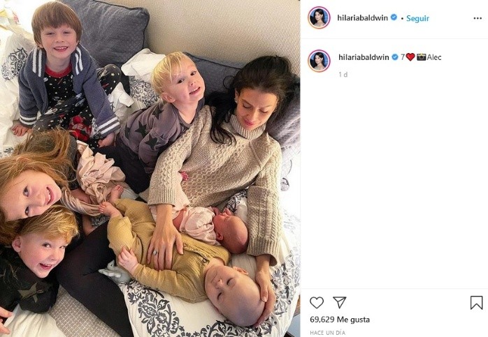 Hilaria y Alec Baldwin dieron la bienvenida a su sexto hijo con una foto de la instructora de yoga publicada en las redes sociales en la que aparece la nueva adición a la familia.Aunque la pareja, que se casó en 2012, no ofreció detalles del nacimiento ni confirmó con un comunicado la noticia, varios medios locales especializados en entretenimiento aseguran haber recibido información de que el bebé recién nacido que aparece en la instantánea es su sexto hijo.Bajo la foto, Hilaria Baldwin publicó una escueta descripción en la que aparece el número 7 seguido de un corazón, en supuesta referencia a sus seis hijos más la hija que comparten Alec Baldwin y Kim Basinger, Ireland Baldwin, de 25 años.Hilaria Baldwin, que en los últimos meses ha rebajado su presencia en las redes después de haber recibido fuertes críticas por haber dado a entender que tenía origen español pese a haber nacido en EU. y no tener ninguna conexión genética con España, tuvo a su último hijo, Eduardo, hace menos de 6 meses, por lo que el último niño podría haber llegado a la familia a través de un vientre de alquiler o de una adopción.Después de sufrir dos abortos en 2019, Hilaria dio a luz a Eduardo en septiembre de 2020, pero en abril de ese año ya habló de otra posible expansión de la familia en una entrevista con Us Weekly."A estas alturas, ¿quién sabe? No lo sé. Pensaba que iba a tener un hijo y ahora, de repente, tengo una enorme prole", declaró entonces.La primera hija de Hilaria y Alec Baldwin, Carmen, tiene 7 años, a la que siguen Rafael, de 5, Leonardo, de 4, Romeo de 2, y Eduardo, de 5 meses, mientras que aun se desconoce el nombre del nuevo miembro.jb