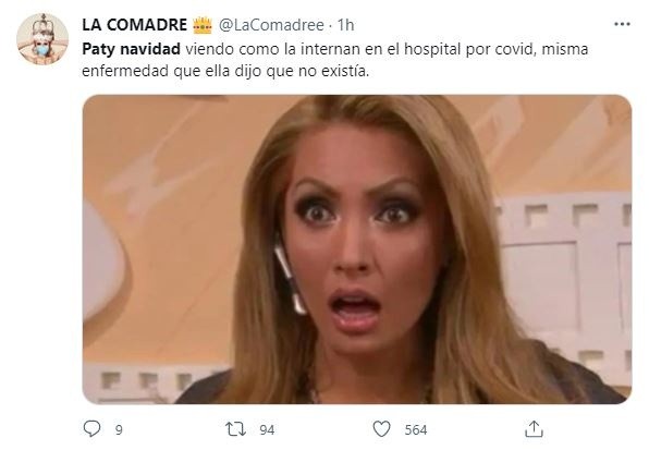 Tras los escándalos que Paty Navidad ha protagonizado al declararse públicamente como no creyente del virus del COVID-19, trasciende que la actriz ha sido hospitalizada ante las complicaciones que ha presentado al contagiarse en recientes días, durante su participación en la nueva temporada del concurso de cocina “Master Chef” en su versión “Celebrity”, producción impulsada por Tv Azteca.De acuerdo a diversos medios nacionales que han replicado la noticia, Paty Navidad fue hospitalizada durante la madrugada de este martes. De acuerdo a información compartida por la revista TV Notas, la actriz fue trasladada desde su domicilio mediante una unidad de ERUM, ante el delicado estado de salud que presentaba.El nombre de la actriz rápidamente se ha posicionado en las principales tendencias y búsqueda de las redes sociales, y aunque diversos usuarios comparten deseos de que Paty Navidad mejore, otros usuarios han recordado las posturas de la actriz que, a través de sus cuentas oficiales, hacía hincapié en que la pandemia era falsa, que el virus era una estrategia política de control masiva y que con la vacunación para frenar la pandemia se daba paso a conspiraciones internacionales para enfermar a la población a causa de intereses políticos.Aunque no hay un comunicado oficial por parte de la actriz, se señala que fuentes cercanas a Paty Navidad informan que la gravedad de la intérprete es tal que está en riesgo de ser intubada, recordando también que en recientes días personalidades del espectáculo, como el actor y presentador Sammy Pérez, falleció a causa del COVID-19 tras permanecer hospitalizado y con demás afectaciones a causa del virus que tanto ha negado Navidad.Si bien la noticia de la hospitalización de Patricia Navidad se ha esparcido en todas las redes, la cuenta oficial de Master Chef México, en donde se ha dado promoción al proyecto que llega a la televisión público este 20 de agosto, no ha publicado nada al respecto de la situación médica de la actriz, pero sí compartió por la tarde un tweet en el que recuerda la participación de la actriz “dispuesta a conquistar a los jueces con su gran sazón”.Las redes sociales oficiales, como Instagram, de Paty Navidad habían sido suspendidas y reportadas por el tipo de información errónea respecto al COVID-19 y sus implicaciones, y al momento la cuenta @ANPNL05, atribuida a la actriz, se mantiene suspendida por incumplir las reglas de Twitter; días antes, Navidad había confirmado haber dado positiva a la prueba PCR, sin embargo, reiteró su postura ante las creencias de la pandemia tiene fines de control mundial y político.Hasta el momento se sabe que Paty Navidad era asintomática ante el contagio y aunque ella misma reiteraba sentirse sana, ha trascendido que su situación se complicó por lo que requirió se asistencia médica de urgencia con los protocolos de traslados y atención por COVID-19.Patricia Navidad no es la única integrante de Master Chef que resultó afectada por el COVID-19, pues la conductora Rebecca de Alba también anunció que se había contagiado e incluso fue hospitalizada ante las complicaciones que presentó, suspendiendo las grabaciones del programa para enfocarse en su recuperación y así retomar el proyecto fuera de peligro.Si te interesó esta noticia y quieres saber más, entonces descarga y descubre INFORMAPlus, la aplicación digital de EL INFORMADOR, en donde tenemos contenidos exclusivos, seleccionados por nuestros editores, para darles una experiencia más completa a los lectores.Descarga la aplicación y pruébala GRATIS por treinta días.Para iOS: https://apple.co/35jaVgbPara Android: https://bit.ly/3gwVSEVSi eres suscriptor de EL INFORMADOR tu acceso está incluido, solicítalo al 33 3678-7777MB