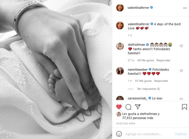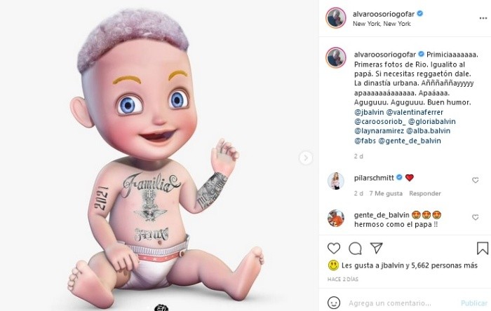 J Balvin y su pareja Valentina Ferrer ya son papás.La modelo argentina compartió una imagen en blanco y negro donde muestra el pie del bebé. En la publicación Ferrer señala que fue hace cuatro días cuando nació su primer hijo."Cuatro días del mejor amor", escribió en Instagram.En menos de una hora, la fotografía recibió más de 70 mil "me gusta" así como decenas de comentarios de felicitaciones por parte de amigos y seguidores de la pareja.Hace algunos días el padré del cantante de "Mi gente" dio la noticia del nacimiento de su nieto, con una imagen de caritcatura y confesó que el pequeño se llamaba Rio.El 27 de junio J Balvin compartió la noticia en Twitter, aunque sus seguidores no sabían de qué se trataba."Querido Rio", escribió.JB