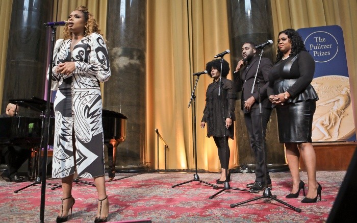 Con su vuelo del lunes cancelado debido al mal tiempo en Chicago, Jennifer Hudson se inquietó ante la idea de perderse su actuación en la ceremonia de los Premios Pulitzer el martes para rendir homenaje a la agasajada Aretha Franklin.Pero entonces Hudson dijo que sintió el espíritu de la Reina del Soul "que se negaba a viajar en avión y se trasladaba a sus presentaciones en un autobús de gira" y condujo casi 13 horas para llegar al almuerzo en Nueva York."Miré para arriba y pensé, 'Sabes qué, es como si el espíritu de Aretha estuviera en mí. Ella no creía en volar, manejaba'", dijo Hudson en una entrevista con The Associated Press. "Llegué a tiempo, cinco minutos antes para cantar, porque no me lo iba a perder. Me dije, 'así tenga que caminar, así tenga que gatear, voy a estar ahí'. Y aquí estoy".Hudson encarnó el espíritu y poder vocal de Franklin con una emocionante y pasional interpretación de "Amazing Grace" que transportó al público de periodistas a la iglesia y los puso a todos de pie."Siempre la tengo en mi mente y mi corazón, y trato de conducirme de la manera que sé que ella hubiera querido que lo hiciera".Franklin, quien murió el pasado agosto a los 76 años, fue reconocida póstumamente con un Pulitzer honorífico, convirtiéndose en la primera mujer individual en recibirlo desde que se creó en 1930. La junta directiva del Pulitzer dijo que le otorgaba el premio a Franklin por "su indeleble contribución a la música y la cultura estadounidense por más de cinco décadas".Su colaborador y buen amigo Clive Davis y su publicista por años, Gwendolyn Quinn, recibieron el galardón en nombre de su familia.El diario Sun-Sentinel del sur de Florida ganó el premio al servicio público por su cobertura del tiroteo del año pasado en la escuela secundaria Marjory Stoneman Douglas en Parkland, Florida, donde 17 estudiantes y trabajadores fueron asesinados. Los Premios Pulitzer también reconocieron al equipo del Pittsburgh Post-Gazette por su cobertura de última hora, al Los Angeles Times por su periodismo de investigación, y a Reuters y The Associated Press por su periodismo internacional.Dana Canedy, administradora de los Premios Pulitzer, dijo que su trabajo favorito fue el de las periodistas estudiantes de la escuela de Parkland por su propia cobertura del trágico tiroteo y los poderosos obituarios que escribieron de los fallecidos.Hudson posó para fotografías con las alumnas en el almuerzo realizado en la Universidad de Columbia, que también contó con las actuaciones de Damien Sneed y Brandie Inez Sutton.Conversó con ellas entre bambalinas sobre los efectos de la violencia armada. Una de ellas le dijo que vivir un tiroteo masivo era un club al que nadie querría pertenecer."Exactamente. Y uno no tiene opción", dijo Hudson, cuya madre, hermano y sobrino de 7 años fueron asesinados a tiros en el 2008. "Nadie sabe cuándo va a ocurrir o a quién le va a ocurrir y uno nunca sabe cómo puede cambiarle la vida hasta que sucede, pero la única manera en que podemos hacer una diferencia es que aquellos que no lo han vivido traten de verlo desde la perspectiva de los que sí lo han vivido. Entonces ocurrirá un cambio".Hudson, ganadora de un Oscar y de múltiples premios Grammy, interpretará a Franklin en una próxima película biográfica. Dijo que siempre sintió una conexión con la Reina del Soul."Incluso cuando audicioné para 'American Idol' canté 'Share Your Love with Me' de Aretha Franklin... ¡Guao! Es como si su presencia siempre estuvo ahí", dijo Hudson. "Y cuando hice 'Dream Girls' me preguntaron ' ¿cuál será el próximo gran papel que interpretarías, o que sientes que podría compararse con este?' Quince años después, se ha manifestado"."(Aretha) me llamó cuando estuve en Broadway y me dijo, 'Tomé la decisión y eres tú'. Le dije, 'Sí señora, estoy lista. Le daré cada pedazo de mí'", continuó Hudson. "Por eso tuve que hacer ese viaje de carretera anoche para estar aquí, porque si dije que estoy adentro, estoy adentro'".JB