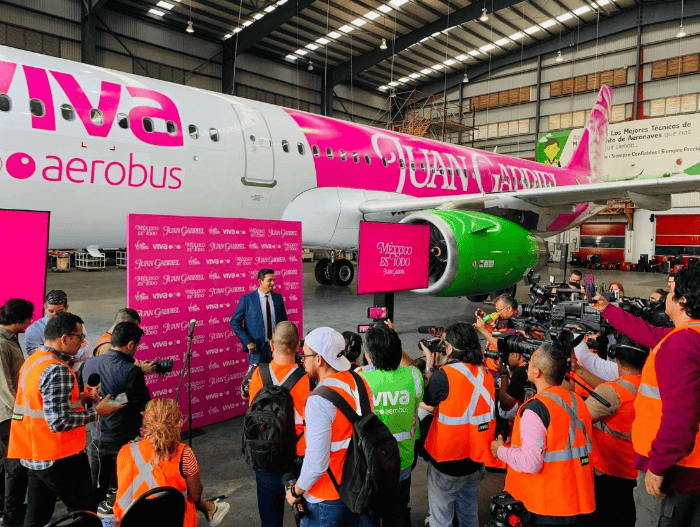 Juan Gabriel reapareció en el cielo. Pero no es una manifestación paranormal, sino la disposición de una aerolínea que lo trajo de vuelta, a propósito de su nuevo tema musical.Fue la aerolínea Viva Aerobus quien el pasado 8 de septiembre anunció el avión del Divo de México, que comenzó a volar a partir del 14 de septiembre. Se trata de un homenaje a Juan Gabriel y a su tema póstumo "Méxxico Es Todo".La revelación de esta icónica aeronave se realizó en el Aeropuerto Internacional de Monterrey y está programada que realice vuelos dentro de México, como otros internacionales. Para acompañar el homenaje a Alberto Aguilera Valadez, nombre real de Juan Gabriel, asistió Iván Aguilera Salas, el hijo del Divo de Juárez. "Este tributo único permitirá a los fanáticos de Juan Gabriel volar al ritmo de su música en el 'Noa Noa'. Manténganse atentos, ya que se esperan más sorpresas relacionadas con este homenaje musical", publicó Viva Aerobus.Más tarde, fue la voz de Juan Gabriel quien dio la bienvenida a los pasajeros que abordaron "su avión" en el vuelo inaugural.Fue a través de redes sociales que se mostró un video en el que se escucha como los pasajeros de la aeronave reciben las indicaciones de una voz muy parecida a la de "Juanga". Entre aplausos y gritos, los clientes de la aerolínea reaccionan al curioso suceso."Pasajeros les habla Juan Gabriel, bienvenidos a su vuelo con escala hacia mi corazón, nos preparamos para despegar, por lo que es importante abrochar y ajustar su cinturón de seguridad, guardar la mesa de servicio, abrir las persianas de las ventanillas", se escucha en la grabación."Los accesorios como cables no deberán obstruir los pasillos, se informa que por seguridad está prohibido fumar durante todo el vuelo, incluyendo cigarrillos electrónicos y vaporizadores; pero está permitido disfrutar, bailar, reír, cantar y llorar, así sin pena", indicó Juan Gabriel ante el asombro de todos.La publicación en redes sociales se comenzó a hacer viral. OA