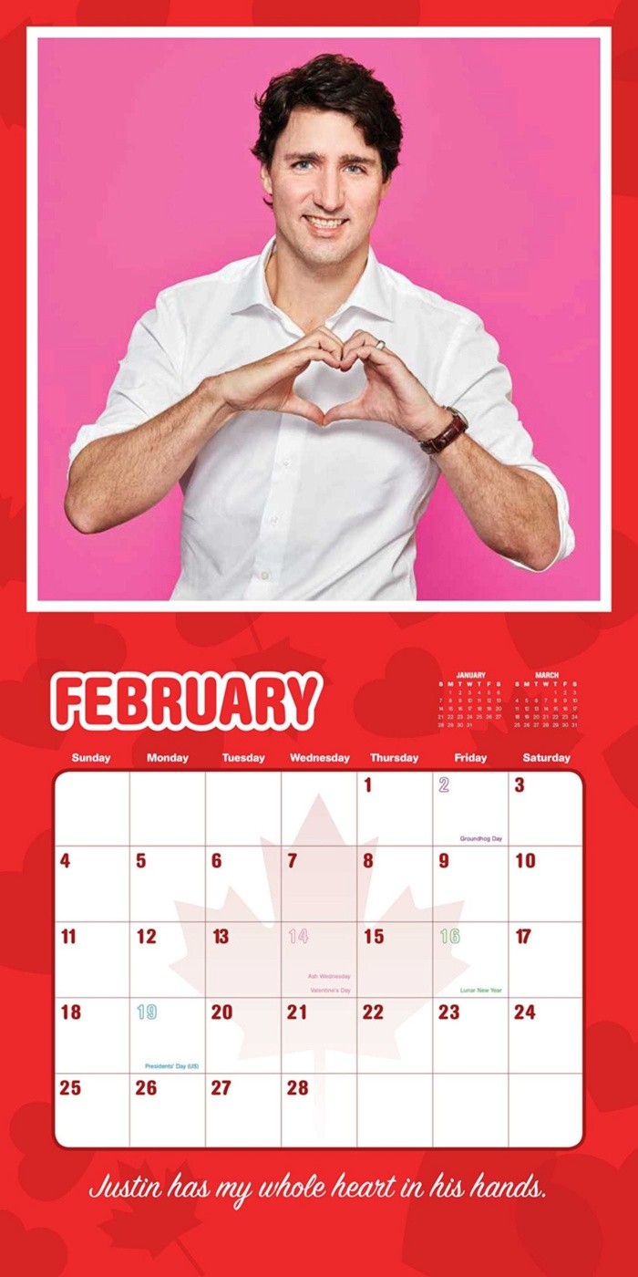 Justin Trudeau es, otra vez, una sensación en las redes sociales, pero en esta ocasión no es debido a uno de sus elocuentes discursos, su participación en marchas o sus ya famosos calcetines, sino por un calendario de 2018 que exhibe fotografías del Primer Ministro de Canadá y que ya está a la venta.Justin Trudeau, mi novio canadiense 2018 es un calendario de pared que muestras algunas fotografías del político norteamericano, al tiempo que plasma un mensaje en cada mes, como: "Justin tiene mi corazón completo en sus manos" u otros que exhaltan sus "puntos de vista desde sus brillantes ojos azules" sobre temas como la familia, el amor, la política y la economía.El artículo inundó las redes sociales y ha recibido comentarios favorecedores entre sus fanáticas. El calendario es una “verdadera celebración del hombre, el mito y el meme que es Justin Trudeau”, describe Universe Publishing, publicación que lo edita y lo vende en Amazon por 12.98 dólares.Cabe señalar que en el mes de octubre Trudeau aparece junto al Presidente Enrique Peña Nieto mientras ambos visten shorts y corren durante una visita oficial del Mandatario mexicano al país del norte.Algunas compradoras han descrito al calendario como "maravilloso" y aseguran sentirse feliz de adquirirlo.OA