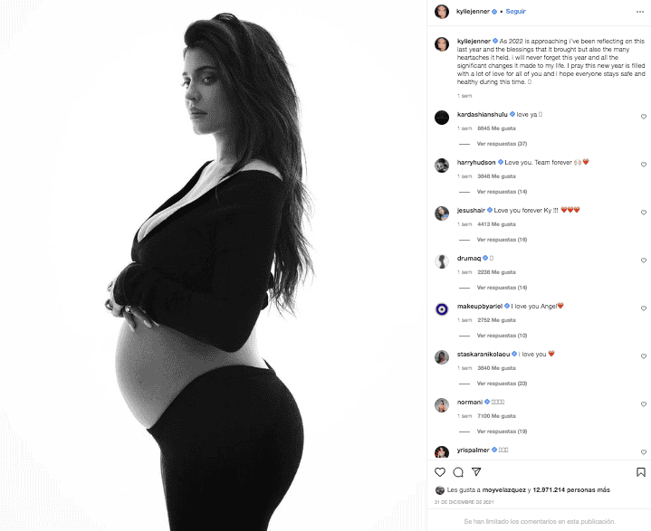 Kylie, la menor de las hermanas Kardashian Jenner es ahora a sus 24 años, la primera mujer en alcanzar los 300 millones de seguidores en Instagram y la segunda cuenta con mayor número de ellos, solo por debajo de Christiano Ronaldo con 389 millones.Desde hace unos meses, Kylie era ya la mujer más seguida e influyente de Instagram, luego de haber superado los más de 270 millones de seguidores de Ariana Grande, quien actualmente empata con la ex estrella Disney Selena Gomez en los 289 millones.Aunque la fundadora de Kylie Cosmetics es la hermana del clan con más seguidores, el resto de sus hermanas le siguen de cerca, siendo Kim la que va detrás con cerca de 280 millones. Por su parte, Kendall Jenner y Khloé Kardashian comparten de momento la misma cantidad de seguidores con 212 millones cada una, dejando a Kourtney Kardashian en el último lugar de popularidad con 159 millones. La famosa empresaria ha dedicado algunas de sus últimas publicaciones a compartir los momentos de su segundo embarazo a lado de su pequeña hija Stormi y aunque solo ha tenido dos publicaciones en su perfil en lo que va del año, entre ambas superan los 25 millones de likes."A medida que se acerca 2022, he estado reflexionando sobre este último año y las bendiciones que trajo, pero también las muchas angustias que tuvo. Nunca olvidaré este año y todos los cambios significativos que hizo en mi vida. Rezo para que este nuevo año esté lleno de mucho amor para todos ustedes y espero que todos se mantengan seguros y saludables durante este tiempo". Se lee en el pie de la primera foto que Kylie compartió este año, en la que posa para un tierno retrato a blanco y negro mostrando su baby bump.VN