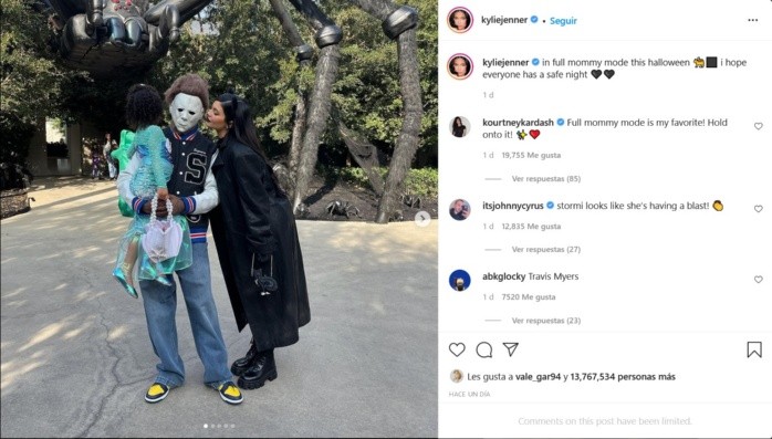 Aunque sabemos que las hermanas Kardashian-Jenner adoran las fiestas y disfrazarse para toda ocasión, esta vez fue especial porque la menor de todas, Kylie Jenner, dejó ver su avanzado embarazo con un tierno disfraz de gatita para esta noche de 'espantos'.La empresaria compartió su felicidad con su hija Stormi Webster, quien se divirtió en grande vestida como una tierna Sirenita, y con su pareja sentimental, Travis Scott.Kylie lució su gran baby bump vestida con un traje ajustado en color negro y manga larga, botas altas y unas orejitas de gatito del mismo tono. Su maquillaje fue muy sencillo: ojos delineados, boca en color oscuro y unas líneas sobre su cara a manera de bigotes.Cabe mencionar que Kris Jenner, mamá de la empresaria, también optó por lucir como una felina enfundada en un traje de Fendi y un coqueto bolso en forma de gatito negro.La magnate de cosméticos y estrella del reality "Keeping Up with The Kardashians" escribió al pie de su publicación: "En completo modo mamá para este Halloween. Espero que todos tengan una noche segura".En cuanto al rapero Travis Scott, papá de los dos hijos de Kylie Jenner, eligió usar una máscara de Michael Myers, uno de los asesinos seriales más aterradores, protagonista de la cinta "Halloween".JM