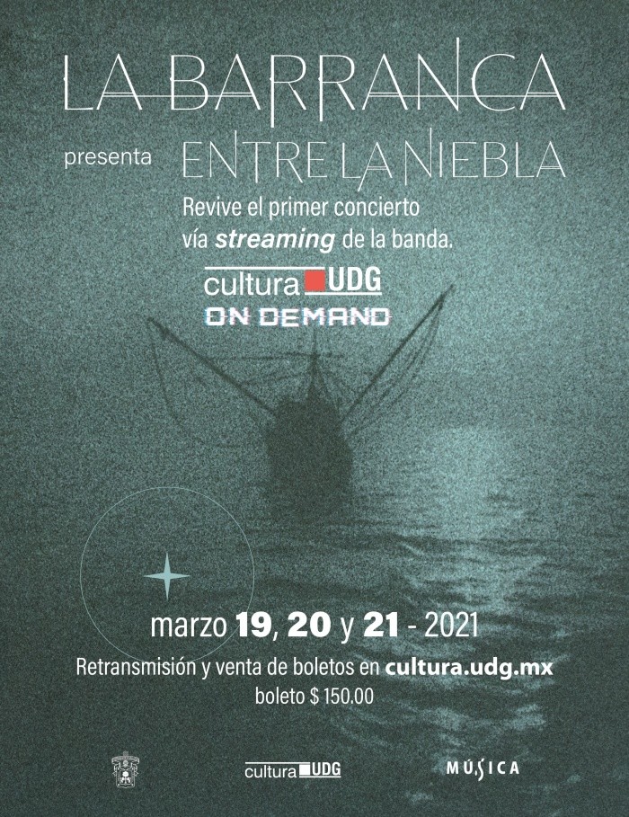 Tras experimentar por primera vez el formato streaming el pasado 20 de diciembre, la agrupación La Barranca revivirá el espectáculo que ofreció desde la virtualidad para presentar “Entre la niebla”, álbum presentado en el marco de los festejos por 25 años de trayectoria.Cultura UdeG informa que este concierto de celebración —filmado desde el Teatro Diana— regresará a las pantallas nuevamente para disfrute del público, pues del 19 al 21 de marzo estará disponible en la plataforma universitaria de Cultura UDG On Demand, con un costo de 150 pesos por acceso.“Con su última producción de estudio, La Barranca cierra una trilogía de producciones discográficas dadas a conocer en el 2020, que incluye dos discos de versiones a piezas de su repertorio: ‘Fragor’, un álbum de versiones orquestales arregladas e interpretadas por la Banda Sinfónica de Aguascalientes; y ‘Nocturno’, un disco de remixes electrónicos a cargo de DJ Noorbac. ‘Entre la niebla’ —grabado y mezclado en la CDMX por el ganador del Grammy Latino, Eduardo Del Águila— cierra este círculo, y lo hace con 10 temas de música nueva, todos originales de José Manuel Aguilera”, detalló Cultura UdeG.El disco ha sido grabado exclusivamente por los cinco integrantes de la banda: José Manuel Aguilera ( voz, guitarra, loops, sintetizadores extra), Adolfo Romero (guitarra), Ernick Romero (bajo, contrabajo, bajo Moog, coros, Yann Zaragoza (piano eléctrico, piano, sintetizadores) y Abraham Mendez (batería, percusión), y tiene como única invitada a la cantante Cecilia Toussaint“Aunque echa mano de materiales, ideas, fragmentos de canciones e incluso montajes previos, el trabajo de ‘Entre la niebla’ inicia formalmente el 14 de abril de 2020. El grueso de la escritura tiene lugar en Valle de Bravo en los meses siguientes, casi en paralelo con el trabajo de arreglos, que se hace a distancia, compartiendo archivos digitalmente. Las bases del disco fueron grabadas en CDMX en la semana del 14 al 18 de septiembre; los pianos el 9 de octubre; instrumentos adicionales y voces se grabaron en los estudios personales de la banda en las semanas siguientes. En ningún punto del proceso estuvieron los cinco integrantes de La Barranca en el mismo espacio físico”.La portada de “Entre la niebla” está ilustrada con un detalle de la obra “Cuerpos Flotantes”, del artista plástico Francisco Larios.AC