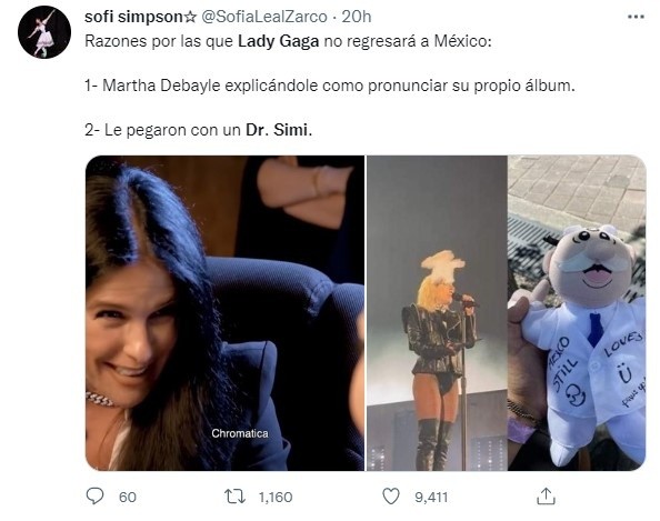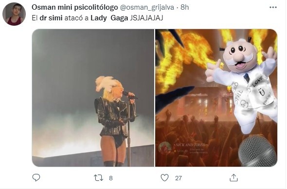En la cultura mexicana hay personajes icónicos y entre ellos se encuentra el inconfundible "Dr. Simi". Esta simpática caricatura ganó popularidad al convertirse en la "mascota oficial" de las famosas farmacias que llevan su nombre; sin embargo, en los últimos meses se ha convertido en tendencia en las redes sociales gracias a una extraña tradición.Varios han sido los avistamientos de muñecos con la forma del simpático y bonachón doctor, golpeando directamente a distintos artistas internacionales, esto luego de que algunos asistentes a sus conciertos decidieran llamar su atención lanzado los juguetes por los aires y hasta el escenario.La última "víctima" fue la cantante Lady Gaga, en el show que ofreció en Toronto, este fin de semana. Un mexicano aventó un "Simi" a la cantante, el cual terminó golpeando la cara de la nominada al Oscar y el momento quedó grabando en un video que ya circula por todo el Internet.El chico que lanzó el juguete se identificó en Twitter como "Richie", incluso, momentos antes de asistir al concierto presumió el mensaje que le escribió a Gaga en la ropa de éste: "México te sigue amando". Pero, ¿de dónde nació este acto? Si bien se desconoce cómo es que lanzar "Simis" se volvió una tradición, el primer "ataque" registrado fue en Corona Capital 2021, en noviembre pasado, cuando un fan le lanzó a la cantante Aurora Aksnes el peluche que le había regalado su exnovio y ella lo presumió frente a todos sus fans.Posteriormente, otro simipeluche aterrizó en uno de los conciertos que ofreció Coldplay en Monterrey; en plena presentación una de sus fans arrojó el muñeco directo al vocalista, Chris Martin, quien lo levantó del piso para colocarlo en su hombro. Otros de los famosos que han recibido "Simis" en sus shows en vivo son: The Killers, Gorillaz, My Chemical Romance, Maroon 5, Chvrches, Mac DeMarco, entre otros.Si bien, ninguno de estos lanzamientos ha ocasionado la molestia de los artistas o alguna lesión por la fuerza que llevan, muchos han considerado como una grosería lo sucedido con Gaga, incluso, aseguraron que esto podía influir en que la artista tomara la decisión de no regresar a México o Latinoamérica en un buen tiempo.FS