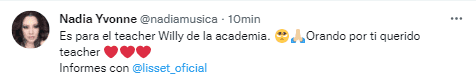 La actriz Lisset pidió donadores de sangre y plaquetas para su papá, quien lamentablemente se encuentra internado en el Centro médico ABC.Fue a través de dos publicaciones donde pidió ayuda para su padre, de nombre Leobardo Guillermo, también publicó todos los requisitos necesarios actualmente para hacer donaciones. "Orando por el maestro Willi",escribió la cantante Nadia. Gloria Stalina, Tatiana y otras celebridades han reiterado su apoyo a Lisset.En otra publicación dio a conocer las indicaciones para realizar donaciones, pues en estos momentos, a causa de la pandemia hay requisitos específicos, por ejemplo no haber viajado en los últimos 28 días o informar en caso de haber padecido COVID, pues son factores a considerar para la viabilidad de la donación.DO