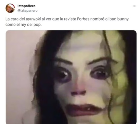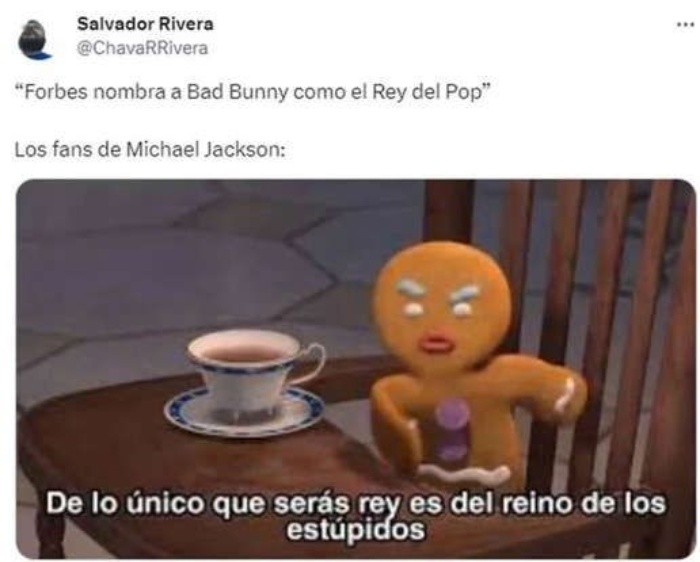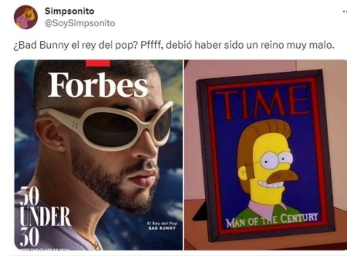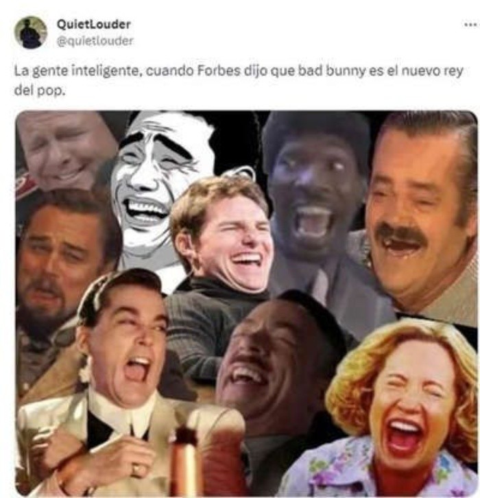 Bad Bunny generó controversia en plataformas digitales después de ser designado como "Rey del Pop" en la última edición de la revista Forbes. La revista explicó a través de Instagram las razones detrás de esta distinción para el cantante de Puerto Rico."Si hay una constante sobre Bad Bunny, que tiene 29 años, es que lo que sea que crea se convierte en un éxito mundial. En los últimos tres años, el alumno de la lista de Forbes 30 menores de 30 2019 ha sido el artista más transmitido de Spotify, con 35.9 mil millones de reproducciones. Su canal de YouTube ha atraído más de 32 mil millones de visitas—más que las de Justin Bieber, Ed Sheeran y, sí, Taylor Swift", se lee en la publicación.Ante ello, usuarios de la plataforma X, antes Twitter, compartieron los mejores memes sobre la portada de la famosa revista.A algunos internautas les causó risa el nombramiento de Bad Bunny.MF