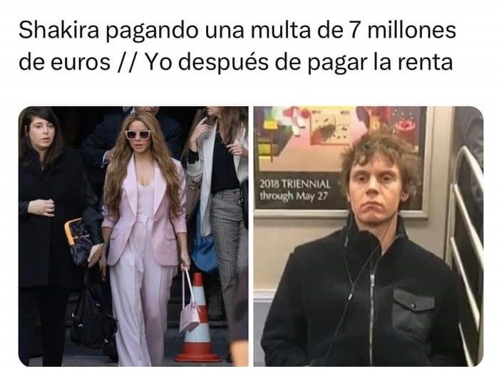 Shakira, con un traje pastel de gran tamaño, llegó a la corte con decisiones firmes, donde admitió su culpabilidad y se comprometió a abonar una multa superior a los 7 millones de euros. Este paso evitó un juicio mediático que podría haber revelado detalles de su vida en España durante su relación con el exfutbolista Gerard Piqué.Según la agencia de noticias AFP, las sanciones impuestas incluyeron una multa de 7.3 millones de euros, equivalente al 50 por ciento del fraude total.Cuando el presidente del Tribunal le cuestionó sobre su culpabilidad y la aceptación de las penas, la cantante respondió sin dudar con un "Sí". El momento fue captado en video y se volvió rápidamente viral en las redes sociales, desencadenando la creatividad de los usuarios con la creación de memes. MF