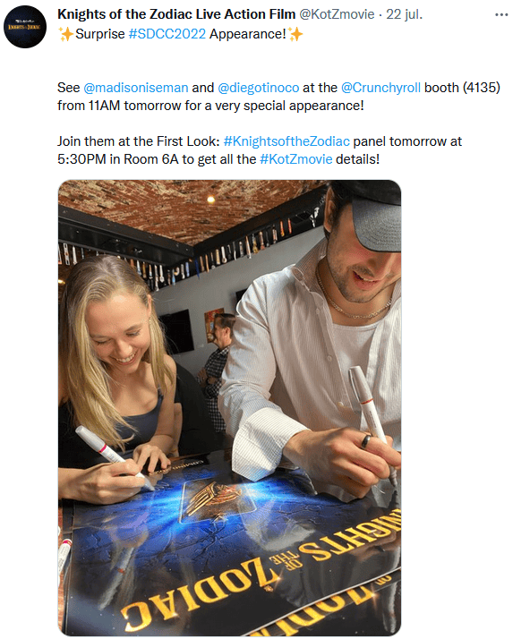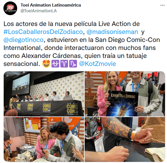 Han pasado cinco años desde que se dio a conocer que "Los Caballeros del Zodiaco" serían llevados a la pantalla grande. Sin embargo, a lo largo del tiempo fueron muchas y múltiples las eventualidades que retrasaron su filmación, hasta que, en septiembre del año pasado, se dio por terminado su rodaje, pero ¿Cuánto más tendremos que esperar para que llegue a las salas cine? Aquí te contamos todo lo que se sabe hasta ahora.A finales de septiembre del año pasado, "The Hollywood Reporter" lo hizo oficial: el anime de 158 capítulos tendría su propio live action, pero en ese momento no se dieron a conocer más pormenores del proyecto. Fue hasta la Convención Internacional de Cómics de San Diego (Comic-Con 2022) en la que las y los fanáticos del manga, creado en 1985, tuvieron la oportunidad de ver un adelanto de la cinta.Aunque no se trató de un tráiler de la película, se proyectaron una serie de imágenes del detrás de cámaras de la filmación, que compartió el panel conformado por el productor, el director y algunos integrantes del elenco de "Los Caballeros del Zodiaco".En los adelantos, se muestra parte de los ensayos de las actrices y los actores y su interacción con las y los extras, quienes se encargaron de realizar las escenas de acción más aparatosas, llenas de técnicas de las artes marciales. Pero eso no fue todo, los seguidores también tuvieron un vistazo del guion gráfico de la cinta.Arata Mackenyu y Madison Iseman encabezan el elenco de "Los Caballeros del Zodiaco"; él es un actor japonés de 25 años, conocido por su participación en películas como "Samurái X: El fin" y por dar voz a Roronoa Zore de "One Pice", ella es famosa por interpretar a Bethany Walker en la saga de "Jumanji" y por aparecer en "Annabelle 3: Vuelve a casa". Diego Tinoco, Famke Janssen, Mark Dacascos, Nick Stahl y Sean Bean son otros de los actores que formarán parte del reparto.La producción estuvo a cargo de Yoshi Ikezawa y la dirección por Tomasz Baginski, un animador de origen polaco que también intervino en la serie "The Witcher", también fue nominado al premio Oscar por el cortometraje "Katedra" en 2002. El guion –además- fue trabajado por Josh Campbell y Matt Stuecken, quienes suelen trabajar en conjunto, como lo hicieron al escribir la historia de "Avenida Cloverfield 10" (2016), "Horizon Line" (2020) y "Notorious Nick" (2021).Hubo otra intervención importante para que la película contara con uno de los aspectos esenciales del manga; la coreografía de las batallas, coordinada por el experto en artes marciales Andy Cheng. ¿Recuerdas las peleas de la película de Marvel "Shang-Chi y la Leyenda de los Diez Anillos"?, pues fue Cheng quien las provocó, literalmente.Los productores de la cinta no revelaron ninguna fecha concreta para el estreno de la película, lo que sí señalaron fue que llegará a los cines de todo el mundo en 2023.OA