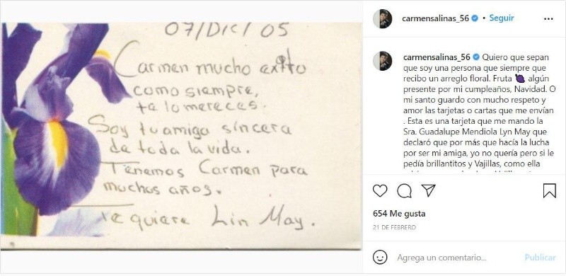 Lyn May llegó la tarde de este jueves al lugar en el que se encuentra hospitalizada Carmen Salinas, quien dijo, es su amiga de toda la vida, desde que hicieron la película "Tívoli".Ahí, negó que tuviera problemas con la actriz, pese a que en febrero de este año ambas estuvieron envueltas en una polémica."No hay problemas, ni ella ni yo, son cosas del show, andamos en esto y nos hacemos promoción de esta manera, pero tanto ella y yo sabemos que nos hemos querido", dijo Lyn a su llegada al hospital esta tarde.En la disputa de febrero pasado, durante en una entrevista con De Primera Mano, Lyn dijo que su amiga era elitista desde que había entrado a la política y que los rumores de su muerte habrían salido de Carmen.Al respecto, Carmen no se quedó callada y publicó un mensaje en sus redes sociales con una foto de una tarjeta firmada por la propia Lyn May."Por la amistad que siempre nos unió pagué la cirugía que le hicieron en la cara para sacarle toda la porquería que le inyectaron, (...), es pecado decir tantas mentiras, como las que usted echa siempre. Dios la perdone", escribió ella.Ahora, Lyn, vestida de gala porque decía que venía de un evento, comentó."Vengo a apoyarla como siempre la he apoyado, ella siempre sabe que la he apoyado, cuando su hijo se enfermó la primera que estuvo fui yo", recordó, y también refirió que el apoyo ha sido mutuo."Cuando yo empecé me decía cómo actuar en Tívoli, yo no sabía nada de cine, ella me enseñaba cómo porque yo no sabía hacer nada y lloraba".Es de tantos años que se conocen, que Lyn afirma que Carmen tiene que bajarle un poquito al trabajo."Trabaja demasiado, yo siempre se lo he dicho, ya debe bajarle un poco al trabajo porque ya tenemos muchos años trabajando. Cuando yo conocí a Carmen ya estaba ella trabajando, Yo trabajaba también en el teatro, pero no hacía teatro, cine y televisión como ella, y sigue igual, le tiene que bajar".Como muestra de que no hay rencillas entre ellas, contó que hace poco fue a comer a su restaurante y hasta dijo que no había señales de que estuviera enferma."No, ella siempre ha estado sana, siempre ha sido una mujer muy sana".Aunque intentó entrar a visitarla, el acceso le fue negado, por lo que dejó el lugar momentos después."Váyanse, déjenla en paz. No puede atender a nadie, recen, es la mejor manera de ayudar a Carmen".La actriz Carmen Salinas, de 82 años, se encuentra hospitalizada tras haber sufrido, al parecer, un derrame cerebral, según informó su familia en un comunicado.Según relatos de la nieta, la actriz cenó el miércoles por la noche, vio "Mi Fortuna es Amarte", telenovela en la que participa, y luego se desmayó.MB