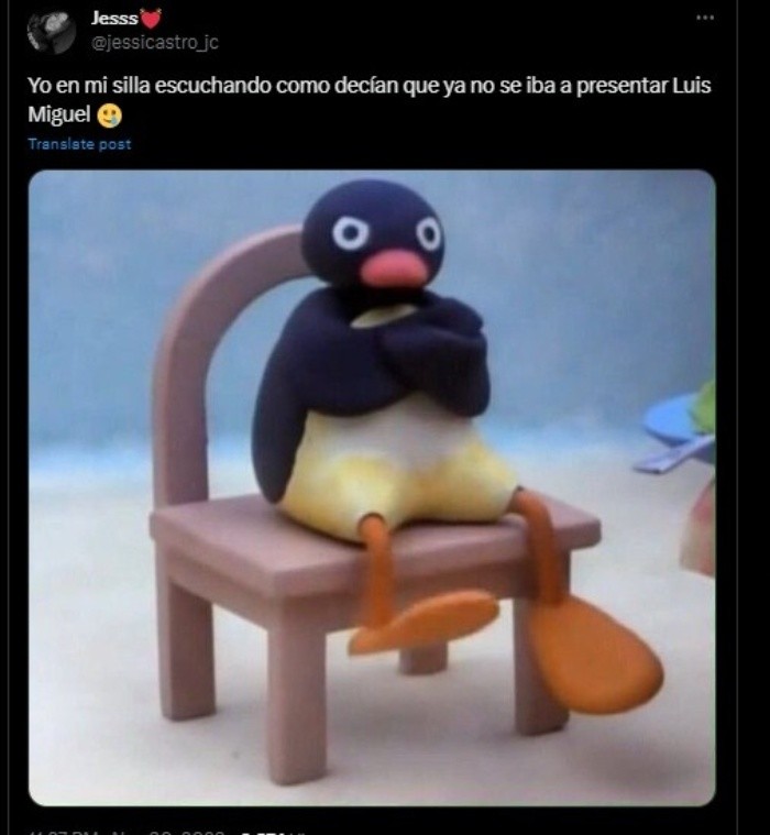 Luis Migue se presentaría el jueves 30 de noviembre en el Estadio La Corregidora de Querétaro, sin embargo, las condiciones climáticas provocaron que el show se cancelara y tuviera que ser pospuesto para el día siguiente, es decir, el viernes 1 de diciembre.La situación causó enojo, pues miles de fans que esperaban ver en vivo al intérprete este jueves, pasaron al menos 2 horas bajo la lluvia hasta que se les comunicó la decisión tomada por los organizadores del evento.La empresa encargada del evento lanzó un comunicado a través de redes sociales donde señala: “Por seguridad de los fans se ha decidido reprogramar el show para el día de mañana a las 8 de la noche en este mismo lugar. Agradecemos su comprensión, por favor, mantengan sus boletos pues serán válidos para mañana. Pedimos una disculpa por las molestias ocasionadas, el show se llevará a cabo mañana”Los internautas expresaron su indignación por medio de mensajes y memes, pues los fanáticos ya se encontraban dentro del estadio incluso consumiendo bebidas y alimentos hasta que se les comunicó la reprogramación del concierto. Te compartimos algunos de los mejores memes.
