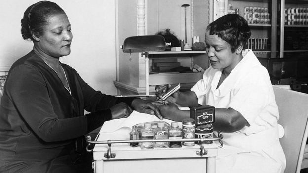 A principios del siglo XX, Estados Unidos vivió un auténtico boom económico gracias a la creciente industrialización.Eso, de alguna manera, dio origen al "sueño americano", el país de las oportunidades para conseguir realizarse, sobre todo en términos económicos.En el marco de esa revolución económica, muchos emprendedores que no venían de familias ricas lograron hacerse millonarios.Y ese fue el caso de Madam C.J. Walker, considerada la primera mujer en el país que se convirtió a sí misma en millonaria gracias a la construcción de un imperio cosmético.Su historia se puede encontrar en unos 200 libros, apareció en varias exhibiciones de museos, incluso en el Simthsonian en Washington DC, y Nueva York nombró una calle en su honor el año pasado.Y en marzo, Netflix lanzó "Self Made" (Hecha a sí misma), una serie de cuatro capítulos protagonizada por la actriz estadounidense Octavia Spencer y que relata la vida de Walker.El éxito de la serie incluso llevó a la reedición de la biografía publicada por la periodista A'Lelia Bundles quien es también la tataranieta de Walker.Pero ¿quién fue Walker y cómo consiguió su éxito económico? Sarah Breedlove, pues ese era su nombre, nació en el seno de una familia pobre en 1867 en el estado de Luisiana, donde sus padres fueron esclavos.Pero al momento de su muerte, a los 51 años, era ya una de las mujeres de negocios más ricas del país."Algunos dicen que ella fue la primera estadounidense en amasar su propia fortuna", le dijo A'Lelia Bundles a la BBC en una entrevista con la historiadora Amanda Foreman.Y así lo ratifica el libro de los records Guinness, que le otorga tal distinción al contar con más de US$1 millón cuando murió en el año 1919.Sin embargo, el libro también reconoce que otras mujeres de negocios estadounidenses podrían haber alcanzado el millón de dólares antes que Walker, pero "sus finanzas no están tan bien documentadas"."Walker no fue la primera afroestadounidense rica, pero fue quizás, la primera en ser famosa", coincide el periodista Shomari Wills, autor del libro Black Fortunes ("Fortunas Negras") sobre los primeros esclavos estadounidenses que se convirtieron en millonarios.Pero ¿cómo consiguió Walker crear su imperio cosmético desde cero?La mujer notó que se le estaba cayendo el pelo y temía quedarse calva.Así, con la ayuda de sus hermanos barberos, Walker comenzó a experimentar con diferentes productos y terminó creando una fórmula para que el pelo vuelva a crecer, según cuenta su biógrafa."Dos de los productos originales de Madam Walker: Wonderful Hair Grower (para el crecimiento del cabello) y Tetter Salve, remedios antiguos para curar la enfermedad del cuero cabelludo. Del archivo de la familia Walker de A'Lelia Bundles, Washington, DC"Como el experimento funcionó, otras personas quisieron probarlo. Así, Walker comenzó su negocio de vender su revolucionario producto puerta a puerta."Y ella también se convirtió en su propia modelo", añadió Bundles al destacar que era la misma Walker la que aparecía en las etiquetas de sus productos.A principios del siglo XX, los estándares de belleza estaban muy relacionados al estereotipo de la mujer europea blanca. Y no había productos para resaltar la apariencia de las mujeres negras de la época."Madam Walker ayudó a esas mujeres a transformarse a sí mismas, a tener más confianza y ayudarlas a ser un poco más económicamente independientes", añadió.El éxito de los productos de Walker fue creciendo cada vez más hasta que necesitó ayuda para realizar las demostraciones y ventas, de modo que comenzó a formar a otras mujeres.Así nació la fábrica The Walker Manufacturing Company, que llegó a emplear a 20.000 personas entre hombres y mujeres en Estados Unidos, América Central y el Caribe.Cuando murió en 1919, Walker dirigía un negocio con un ingreso anual de más de US$500.000 y había acumulado una importante cantidad de propiedades que incluían la elegante mansión "Villa Lewaro" en el condado de Westchester, Nueva York, y un palacio en Harlem, según el libro Guinness."Soy una mujer que viene de los campos de algodón del sur. De allí me ascendieron a la tina de lavado. De allí me promovieron a la cocina. Y desde allí me promoví al negocio de la fabricación de productos para el cabello y otras preparaciones... He construido mi propia fábrica en mi propio terreno", dijo Walker en 1912, según publica su sitio web oficial.Sin embargo, a pesar de su éxito como empresaria y su fortuna, J.C. Walker no pudo escapar al sexismo y racismo de la época, apuntó la historiadora Amanda Foreman.Así que decidió invertir parte de la fortuna que iba acumulando en organizaciones que luchaban por causas de derechos humanos e igualdad.Incluso llegó a la Casa Blanca para entregar una petición al entonces presidente, Woodrow Wilson, para conseguir su apoyo en la defensa de los ciudadanos negros que eran víctimas frecuentes de linchamientos en la época."Así que ella usó su dinero y poder para marcar una diferencia" en la sociedad, concluyó Bundles.*Esta historia fue publicada originalmente el 4 de abril de 2019 y actualizada el 7 de abril de 2020 tras el estreno de la serie de Netflix sobre la vida de Madam C.J. Walker. ***Ahora puedes recibir notificaciones de BBC Mundo. Descarga la nueva versión de nuestra app y actívalas para no perderte nuestro mejor contenido.