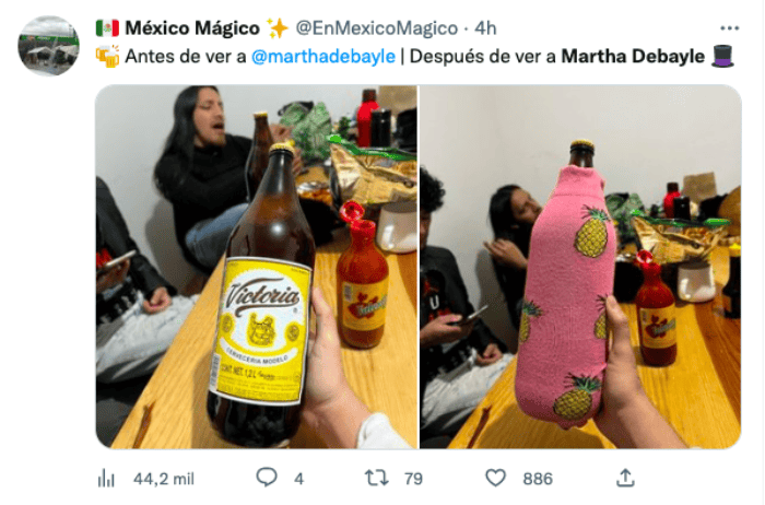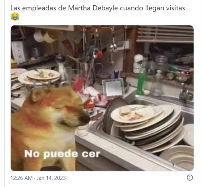 La conductora y empresaria Martha Debayle dio a conocer un video polémico donde asegura que da consejos de elegancia como la manera correcta de ofrecer agua o refresco a las visitas, la forma de tomar el té y cómo servir la barra de queso.Debayle generalmente graba podcast de salud emocional y charlas motivacionales, pero no es la primera vez que es criticada por sus comentarios.Luego de dar a conocer el video se hizo viral debido a los comentarios de usuarios de redes sociales, quienes compararon los consejos que ella da con lo que en realidad se vive en las familias mexicanas o se mofaron y parodiaron las recomendaciones de la famosa. Algunos usuarios de redes sociales comentaron que usan vasos de veladoras en sus casas para servir las bebidas "Creo que definitivamente estamos en realidades diferentes, yo no he visto ese cuchillo y a vecs ni yo traigo calcetines", señaló @TheRealEyeMoon·"En un país donde la mayoría come en la calle tacos en platos de plástico forrados con una bolsa y toma refrescos de 600ml directos del envase de pet y las gomichelas en envase cartón escarchado con chamoy y ajonjolí que NMM. Absurdo", refirió otra persona.