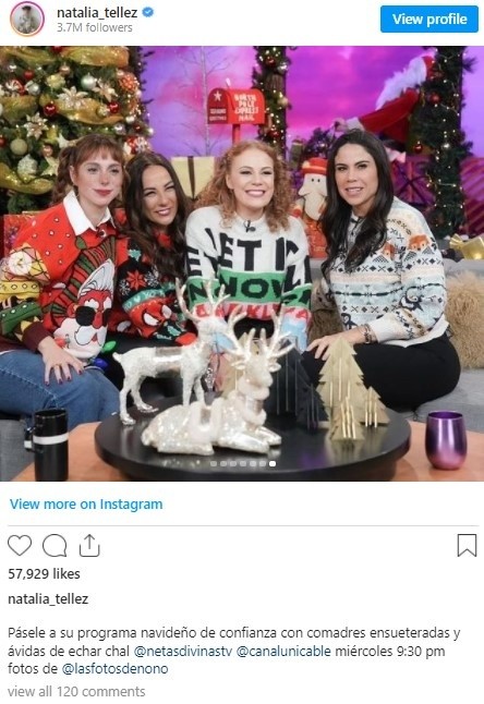 A unas cuantas semanas de dar a luz, Natalia Telléz muestra su pancita en redes sociales. Es a través de Instagram, que la conductora ha documentado su embarazo, plasmando imágenes de su felicidad al lado de Antonio Zavala, su pareja. Sin embargo, la foto que publicó este jueves llamó la atención de sus seguidores por su avanzado estado de gestación.Aunque no es muy afecta a la Navidad, Téllez se ha declarado lista para pasar esta fiesta. En el programa Netas Divinas Téllez externó por qué no es tan fan de las fechas. "Lo que siento es que la Navidad no es tan especial, a mí no me encanta porque tienes muchas expectativas y porque la gente luego se pelea. De pequeña yo tenía una expectativa muy alta y nunca era así, además la gente gasta mucho y engorda", comentó."Me van a odiar mucho, porque yo no crecí con la tradición de Santa Claus y de hecho yo no le voy a decir de Santa Claus a Emilia", contó. Mientras que Paola Rojas y el resto de sus amigas revelaron que ellas se encargarán de que la bebé de Natalia se enamore de la Navidad y tenga presente las costumbres y tradiciones", confesó en la emisión.Una vez que dé a luz, la conductora se enfocará en la promoción de la versión en español de la serie "I Love Lucy". Leonardo Zimbrón, uno de los productores del proyecto titulado "Todo por Lucy", indicó que desde un inicio trabajó por varios meses con el grupo de escritores para el acabado final. "Todo por Lucy " se filmó este año durante la pandemia, con fecha de estreno en 2022 vía Amazon Prime Video.AF