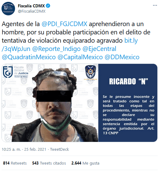 La Fiscalía de la Ciudad de México informó que este jueves fue detenido el famoso youtuber "Rix", tras la denuncia de la influencer Nath Campos, por presuntamente haber abusado de ella.A través de sus redes sociales, la Fiscalía informó que Ricardo "N" fue detenido por su probable participación en el delito de tentativa de violación equiparado agravado.Hace un mes, Nath Campos informó en un video de su canal de YouTube que Rix, quien también se dedica a crear contenido, abusó de ella luego de haber asistido a una fiesta hace algunos años.Ella explica que había bebido mucho alcohol, por lo que sus amigos se ofrecieron a acompañarla de regreso a su casa."Llegamos a mi edificio y que Rix, uno de los amigos que venía acompañándome se ofreció a subirme. Yo no podía caminar bien, estaba en un estado bastante pesado".Al día siguiente, ella despertó y Rix seguía en su casa, por lo que le cuestionó qué había pasado esa noche y lo corrió de su casa. Explicó que el youtuber le mandó un mensaje después en el que le decía que "no se malvibrara con él" y que fue algo "en lo que ella también participó".Después, Rix hizo lo propio y negó dichas acusaciones a través de unas historias de Instagram, donde tiene casi tres millones de seguidores.Hasta el momento, Nath Campos no ha ofrecido declaraciones sobre la detención de Rix.Con información de SUN