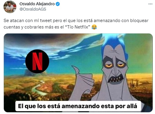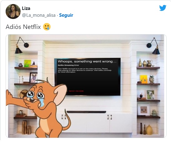 Este lunes la plataforma de streaming Netflix dio a conocer que se comenzará a enviar correos a los usuarios en México informándoles que se cobrará una tarifa extra por compartir la cuenta a otras personas.Ahora las personas que compartan su cuenta a una persona que vive en un hogar distinto tendrá que pagar 69 pesos extra.Ante la noticia que compartió Netflix en sus diferentes redes sociales, los usuarios compartieron los mejores memes en contra de la plataforma de streaming. MF