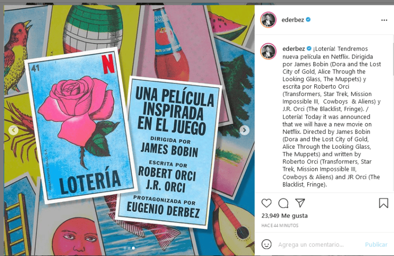 Netflix reveló que además de protagonizar “Lotería”, Eugenio Derbez será el productor de esta película que estará bajo la dirección de James Bobin, y basada en un guion de Roberto Orci y J.R. Orci.Netflix detalló que “Lotería” está inspirada en el popular juego de mesa que da el título al filme y su trama se enfocará en la vida de un viudo, interpretado por Eugenio Derbez, que en sus intentos por acercarse a sus hijos, enfrentará con desafíos cuando una lotería familiar cobra vida y lo lleva a situaciones inesperadas.“La familia se aventurará en un viaje alrededor del mundo para descubrir los secretos de la lotería y así evitar que caiga en manos de un misterioso magnate con un malvado plan”, informó Netflix en el anunció de este proyecto.James Bobin, director de “Lotería”, fue nominado al premio Emmy y ha participado en películas como “Dora y la ciudad perdida”, “Alicia a través del espejo” y “Los Muppets”, por ejemplo.Por su parte, el escritor Roberto Orci se ha involucrado en proyectos como “Transformers”, “Star Trek”, “Misión Imposible III” y “Cowboys y Aliens”, en tanto que J.R. Orci se ha relacionado con “The Blacklist” y “Fringe”).Además de tener a Eugenio Derbez como productor, en esta tarea también participan Ben Odell para “3Pas”; Eric y Kim Tannenbaum, quienes fueron productores ejecutivos de la serie Acapulco para Apple, también protagonizada por Derbez; también fueron productores ejecutivos de “Home Economics” de ABC, “The Last Org” para TBS y la serie “Zoey's Extraordinary Playlist” para NBC.Con “3Pas”, Odell y Derbez acaban de terminar “The Valet”, producida para Lionsgate y protagonizada por el mexicano. Además, recientemente lanzaron el reality “De Viaje con los Derbez”, una de las producciones más populares de la plataforma Amazon Prime Video.La película “Lotería” está inspirada en el juego de mesa del mismo nombre, y que es un juego tradicional de azar similar al Bingo popularizado en México y América Latina. El juego tiene orígenes que se remontan a la Italia del siglo XV, pero la versión del juego hoy en día, así como las imágenes icónicas, fueron creadas y popularizadas por Don Clemente Jacques en 1887.GC