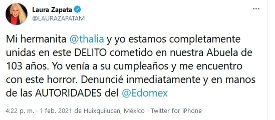 "Nunca le pegué, nunca la maltraté, nunca le hice daño", señaló Jessica de Jesús Martínez, quien fue cuidadora de doña Eva Mange, abuela de Laura Zapata y Thalía.La semana pasada, Zapata denunció a la enfermera y quienes resultaran responsables del maltrato a su abuela lo cual tuvo como resultado que se dictaminara la clausura del asilo Le Grand senior living.En entrevista para "Ventaneando", Jessica, quien fue contratada en el asilo mediante la agencia de enfermería Italia compartió lo que ella vivió, además señaló que el "equipo médico y de enfermería de la residencia geriátrica se negaba a brindar servicio a doña Eva"."En Le Grand siempre nuestras funciones eran como cuidadoras aunque tú dijeras 'es que soy enfermera', no tú eres cuidadora. Ellos decían que tenían a su equipo médico que para eso tenían enfermería; de hecho yo no podía meter mi instrumental para tomar la presión", detalló. Sobre los cuidados de Eva, de 103 años, relató que por indicación de Zapata, no podía estar dormida después de las 08:00 horas."Era a las 08:30 levantarla a bañarse, después arreglarla, que ella desayunara, pero tenía que desayunar por sí sola cuando regularmente a veces la señora no podía o se cansaba, pero Laura decía que la teníamos que estimular", explicó.La cuidadora dijo que le había contado a Laura Zapata sobre las lesiones de doña Eva desde el primer día, incluida una en el coxis. Además detalló que la señora tiene hipotiroidismo, incontinencia urinaria, hipertensión, ansiedad y siempre mojaba su pañal pero la indicación de su nieta era que tuviera únicamente un pañal por día y uno por noche."La señora Laura también quería que tomara dos litros de agua diaria entonces con incontinencia urinaria y tomar esa cantidad de agua lógicamente va a usar demasiados pañales", explicó Jessica."No la podíamos acostar, y muchas veces si le reportaban a la señora Laura 'encontramos a su abuelita acostada' ella nos regañaba y decía 'es que mi abuelita no tiene que estar acostada, tiene que estar en sus actividades'. Pero a veces se ponía a llorar, la señora se ponía a llorar así mucho y le decía 'por qué lloras Evita' y me decía que porque la habían abandonado ahí y yo le decía 'no, no estás abandonada estás conmigo'".Respecto a la comunicación de la cuidadora con Zapata, la primera detalló que la actriz la bloqueó del celular desde que salió del asilo. Por otro lado Zapata ha señalado a través de Twitter que tanto ella como su hermana Thalía están unidas en lo que se refiere al delito que se cometió contra su abuela.Zapata en su cuenta de Twitter desde que denunció el maltrato y subió las imágenes de las heridas de su abuelita, ha mantenido informados a sus seguidores ya los medios de comunicación sobre este penoso asunto y hace algunas horas subió un mensaje en donde asegura que doña Eva tiene siete heridas.También informó que tanto ella como su hermana Thalía están juntas en todo esto, para aclarar y llegar hasta las últimas consecuencias.También la actriz de "La Usurpadora", "María Mercedes", entre otras más, ayer domingo subió el comunicado de prensa del resultado sobre las investigaciones que realizaron las autoridades la semana pasada en la casa de descanso ubicada en Huixquilucan, Estado de México, y en donde se puede leer que se detectó un riesgo inminente para la vida de los residentes del asilo y por ello se decidió legalmente suspender las actividades laborales.jb