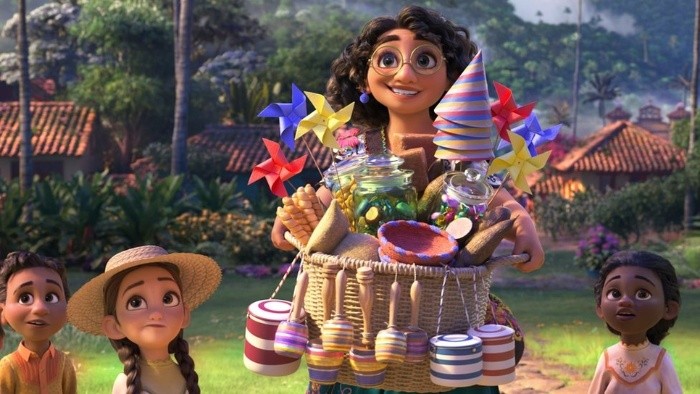 Atención: este artículo contiene detalles sobre la trama de la película "Encanto" de DisneyEs la primera película de Disney inspirada en Colombia.Después del éxito de "Coco", ambientada en México, "Encanto" narra la historia de una familia que vive en una casa mágica en medio de las montañas de Colombia.Aunque la historia es universal, algunos guiños de la película solo lo entenderán los colombianos.Para lograr ese nivel de detalle, los productores de Disney trabajaron con la asesoría de antropólogos, botánicos, músicos, lingüistas y arquitectos colombianos."Encanto", dirigida por Byron Howard y Jared Bush, con música autoría de Lin-Manuel Miranda, se estrenó el pasado noviembre y desde entonces no ha hecho más que cosechar éxitos, como el Globo de Oro o el Bafta a mejor película de animación.Este domingo se alzó con el Oscar a la mejor película animada.Estos son cinco detalles con los que muchos colombianos se sentirán identificados, y que podrían pasar desapercibidos para espectadores de otros países.La familia Madrigal se vio forzada a dejar su pueblo por culpa de la violencia.En la vida real, millones de colombianos han sufrido una situación similar: han sido desplazados forzosamente a causa del conflicto interno entre guerrilleros, paramilitares, narcotraficantes y las fuerzas armadas del país, que comenzó hace más de 60 años.Colombia es el país con más desplazados internos del mundo.Entre 1985 y 2020, más 8,3 millones de personas en Colombia tuvieron que abandonar su hogar huyendo de la violencia, según cifras del gobierno colombiano que recoge un informe de la Agencia de la ONU para los refugiados (ACNUR) de junio de 2021.Colombia es uno de los 17 países que el Programa de las Naciones Unidas para el Medio Ambiente reconoce como megadiversos.Según datos del gobierno colombiano, el país alberga el 14% de la biodiversidad del planeta en su territorio.La casa de los Madrigal está rodeada de palmas de cera del Valle de Cocora, que son el árbol nacional de Colombia y las palmeras más altas del mundo, pudiendo lograr los 60 metros de altura.También se ven los cafetales, la variedad de flores y la exuberancia de la vegetación amazónica.El pequeño Antonio vive rodeado de tucanes, tapires, chigüiros, coatíes y un jaguar, el felino más grande de América, y el tercero a nivel mundial después del león y el tigre.La mayoría de los jaguares viven en el Amazonas y padecen la constante amenaza de la deforestación.También hay una escena dedicada al río de los siete colores, ubicado en Caño Cristales, en el Parque Natural de la Serranía de la Macarena.El mestizaje entre europeos, africanos e indígenas nativos produjo en Colombia una variedad musical que cambia de región a región.En "Encanto" aparece el acordeón, de origen alemán, y principal instrumento del vallenato, un género musical del Caribe colombiano hermano de la cumbia, que también suena a lo largo de la película.La canción central de la película "Colombia, mi encanto", que interpreta Carlos Vives, es una versión moderna de un vallenato con acordeón mezclado con champeta, otro ritmo originario del Caribe colombiano, muy popular en ciudades como Cartagena y de raíces africanas y antillanas.También se escucha la salsa, que aunque no es de origen colombiano, es muy popular en todo el país, con la ciudad de Cali como uno de sus bastiones.Las notas de piano que interpreta el padre de Mirabel, corresponden al comienzo de la canción "En Barranquilla me quedo", del cantante Joe Arroyo. La canción es uno de los himnos del Carnaval de Barranquilla, una de las fiestas folclóricas más importantes del país.El colorido vestido de Mirabel está inspirado en un traje típico del municipio de Vélez, en el departamento de Santander, que se utiliza para ocasiones especiales y al que se le rinde homenaje en las festividades de esa región.El bolso que lleva colgado es una mochila muy similar a las que elaboran los indígenas wayuú, quienes habitan zonas desérticas en la península de La Guajira, frente al mar Caribe en el norte de Colombia.También vemos personas con sombreros "vueltiaos" y camisas guayaberas, muy populares en la región Caribe, donde el clima es cálido.En cambio, Bruno y otros personajes utilizan ruanas, que son ponchos muy usados en departamentos como Boyacá y Cundinamarca, para protegerse del frío del altiplano en el centro del país.Aunque Colombia y Venezuela se disputan la autoría de las arepas, en "Encanto" queda reflejado el papel central que éstas juegan en la cocina colombiana.En el país cada región tiene su propio tipo de arepas. Las hay fritas o asadas, de harina de maíz o de yuca, dulces o saladas, grandes o pequeñas, y con una variedad de rellenos.Como muestra la madre de Mirabel, una arepita de queso bien caliente puede ser la solución a muchos problemas.También aparecen los buñuelos, muy populares en la época de navidad.En la cena de compromiso de Isabela, el plato principal es el ajiaco santafereño, una sopa de pollo, papa y maíz típica de la capital.El regalo que Mirabel recibe al principio de la película son las famosas macetas del Valle del Cauca, en el occidente de Colombia.Estos son dulces a base de caña de azúcar que cada año los padrinos entregan en el tradicional Día del ahijado. Las macetas vienen acompañadas de coloridos barriletes y adornos.Las mariposas amarillas: son uno de los símbolos más llamativos del realismo mágico del Nobel colombiano Gabriel García Márquez y su novela "Cien años de soledad".Lo silleteros: en una escena en la que Mirabel canta, se ve a un par de campesinos cargando pesados arreglos florales a sus espaldas. Son los silleteros, personajes emblemáticos del departamento de Antioquia dedicados a la floricultura y que cada año compiten en el desfile de silleteros en la Feria de las Flores de Medellín.El tejo: en la misma secuencia aparecen unos hombres jugando tejo. El juego es típi