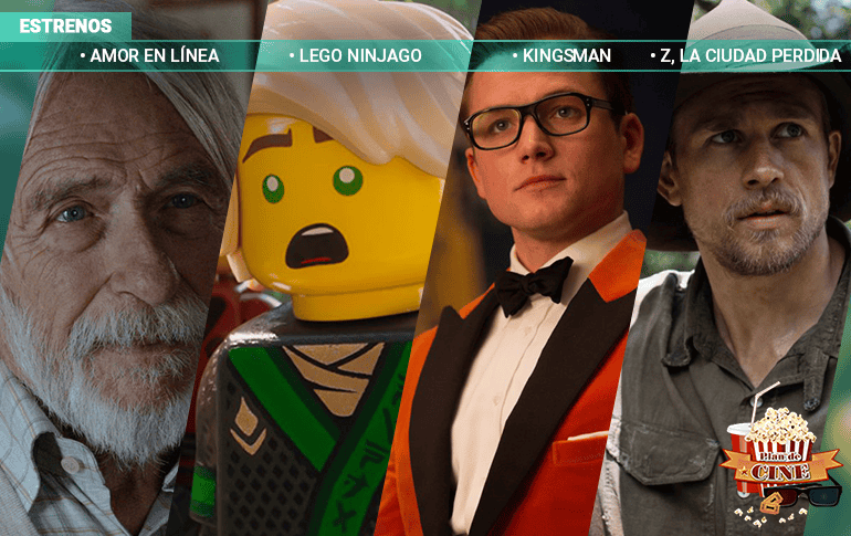 Este fin de semana tenemos la llegada de seis películas que renuevan la cartelera de cine de nuestra ciudad. Conoce el comentario de Arturo Garibay sobre cada una de ellas en esta nueva edición de Plan de Cine. Primero tenemos el lanzamiento de “LEGO Ninjago”, la nueva película basada en los sets de construcción infantiles. Además, se estrena la cinta de acción “Kingsman: el Círculo Dorado”. Otros estrenos que llegan a los cines este fin de semana son “Z, la Ciudad Perdida” con Charlie Hunnam y Tom Holland, también la extranjera “Amor en línea”, “Muerte misteriosa” y la cinta de terror “Robert, el muñeco siniestro”. ¡Tenemos boletos!Participa por un pase sencillo para disfrutar de las proyecciones concierto de "Cinema Paradiso y Piano" o de "Amelié y Piano" en Teatro Diana en nuestras redes sociales.No te pierdas una nueva entrega de 'Plan de Cine' todos los jueves en EL INFORMADOR.