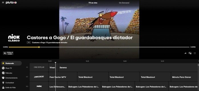El servicio de streaming gratuito Pluto TV llegó a México y Latinoamérica en general en un formato similar al de la televisión por cable.Se trata de una plataforma de 24 canales (hasta el momento) en vivo y con comerciales, que no necesita cuentas para poder ingresar, tan sólo con entrar al siguiente link: https://pluto.tv/live-tv/nick-clasico y aceptar los términos de uso del sitio.Dichos contenidos se categorizan en:De acuerdo con las políticas de uso del servicio, es preferible que la persona que esté disfrutando del contenido sea mayor a 13 años de edad, y menores de 18 años bajo supervisión de un adulto.Asimismo, en la opción On Demand (Bajo Demanda), el usuario puede elegir de entre el contenido para mirarlo de manera similar a plataformas como Netflix, HBO y Disney+.Por el momento sólo está disponible para web, pues su aplicación para Android e iOS pues menciona que “aún no se encuentra en la región”.AC